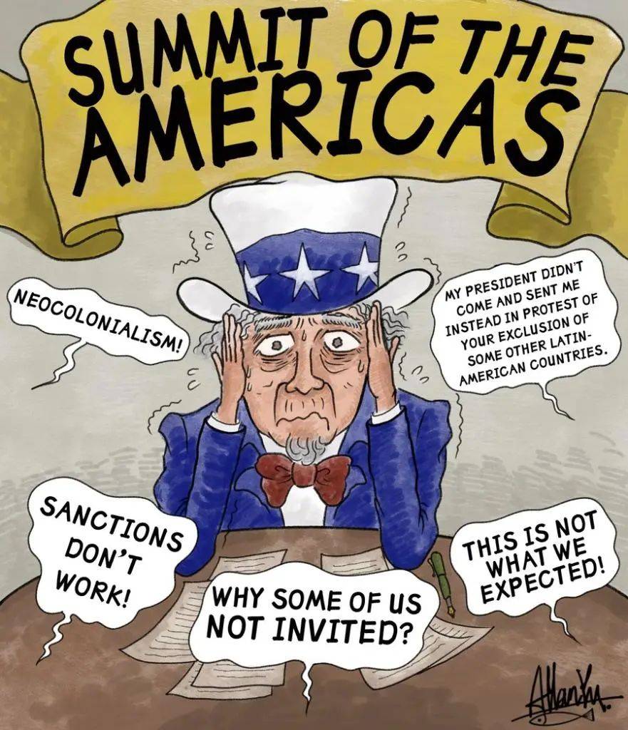 “本届美洲峰会已让美国尝到恶果” 本届峰会召开之前,主办国美国单方面宣布,因所谓“民主问题”,将不邀请古巴、尼加拉瓜和委内瑞拉领导人参会。委内瑞拉总统马杜罗坦言:“正是美国政府自己捅了美洲峰会一刀,把它搞砸了。” 拉美网友纷纷在海外社交媒体上留言“补刀”。他们给美国政府贴上了“独裁”“假民主”“侵犯人权”等标签,认为此次洛杉矶峰会得不到大家的“祝福”,实乃美国自食恶果、自作自受。 |