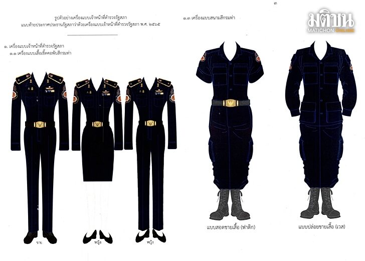 泰国华人网讯  6月16日,据泰媒报道,泰国国会主席川立派阁下于6月12日签署了关于改进议会警察制服的公告,旨在推动议会警察制服的现代化。公告内容对制服的各项细节作出了详细规定,包括衬衫、裤子、裙子、纽扣、帽子、徽章等,同时要求在2022年12月31日前完成制服改进。