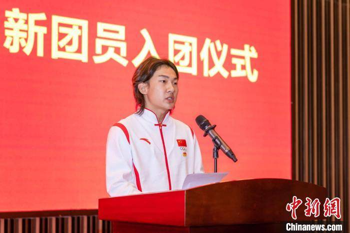 奏唱国歌,宣布新团员名单,佩戴团徽、颁发团章和团员证……“入团”现场,包括苏翊鸣在内的10名新团员,举起右手面向团旗庄严宣誓。