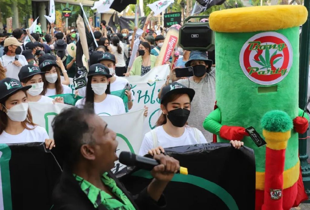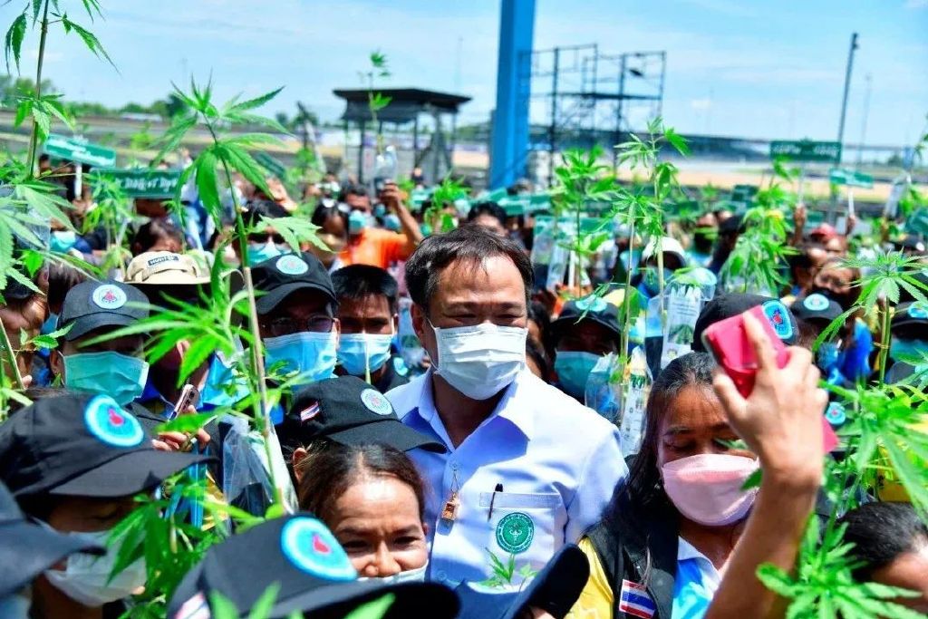 泰国大麻头号推手——卫生部长阿努霆,在他的自豪党大本营召开大麻盛会。 说是展会,实际上更像是一场大麻合法化的誓师大会或者狂欢嘉年华。 阿努霆,这位为了推大麻合法化而当上卫生部长的大麻种植园主,当场向民众发放一千株大麻苗,并号召大麻种遍泰国全境,让百万大麻之花盛开在泰王国的每一个角落!