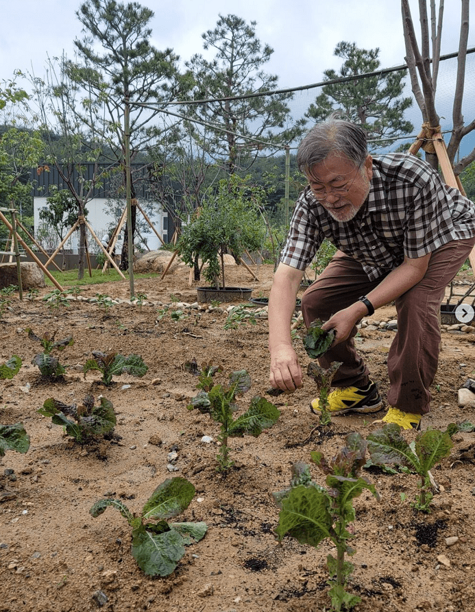 文在寅下地采摘生菜(社交平台) 海外网6月20日电据韩联社报道,当地时间19日,韩国前总统文在寅在社交平台上晒出照片,分享了他卸任后的养老生活。
