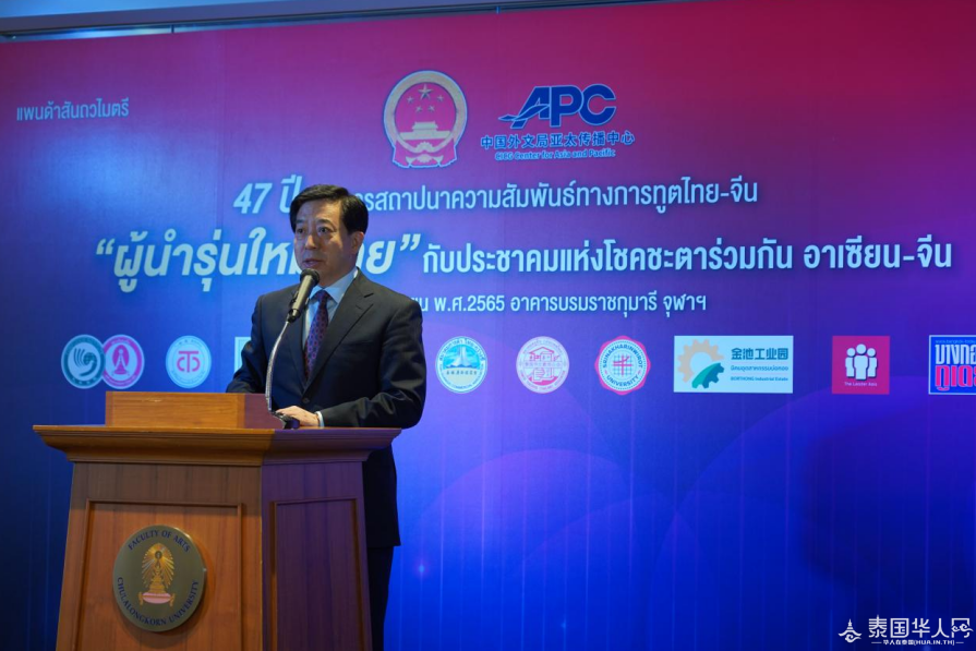 6月29日,韩志强大使出席“携手共建中国东盟命运共同体——泰国青年领袖论坛”开幕式并发表演讲,全面回顾中国东盟关系发展、展望中国东盟关系前景,并就全球安全和发展问题介绍中方立场。泰国前总理阿披实、高教科研创新部部长助理达努、朱拉隆功大学校长班迪、泰中战略研究中心主任苏拉西上将、泰中“一带一路”研究中心主任威伦等应邀出席,中国外文局副局长兼总编辑高岸明发表视频致辞。
