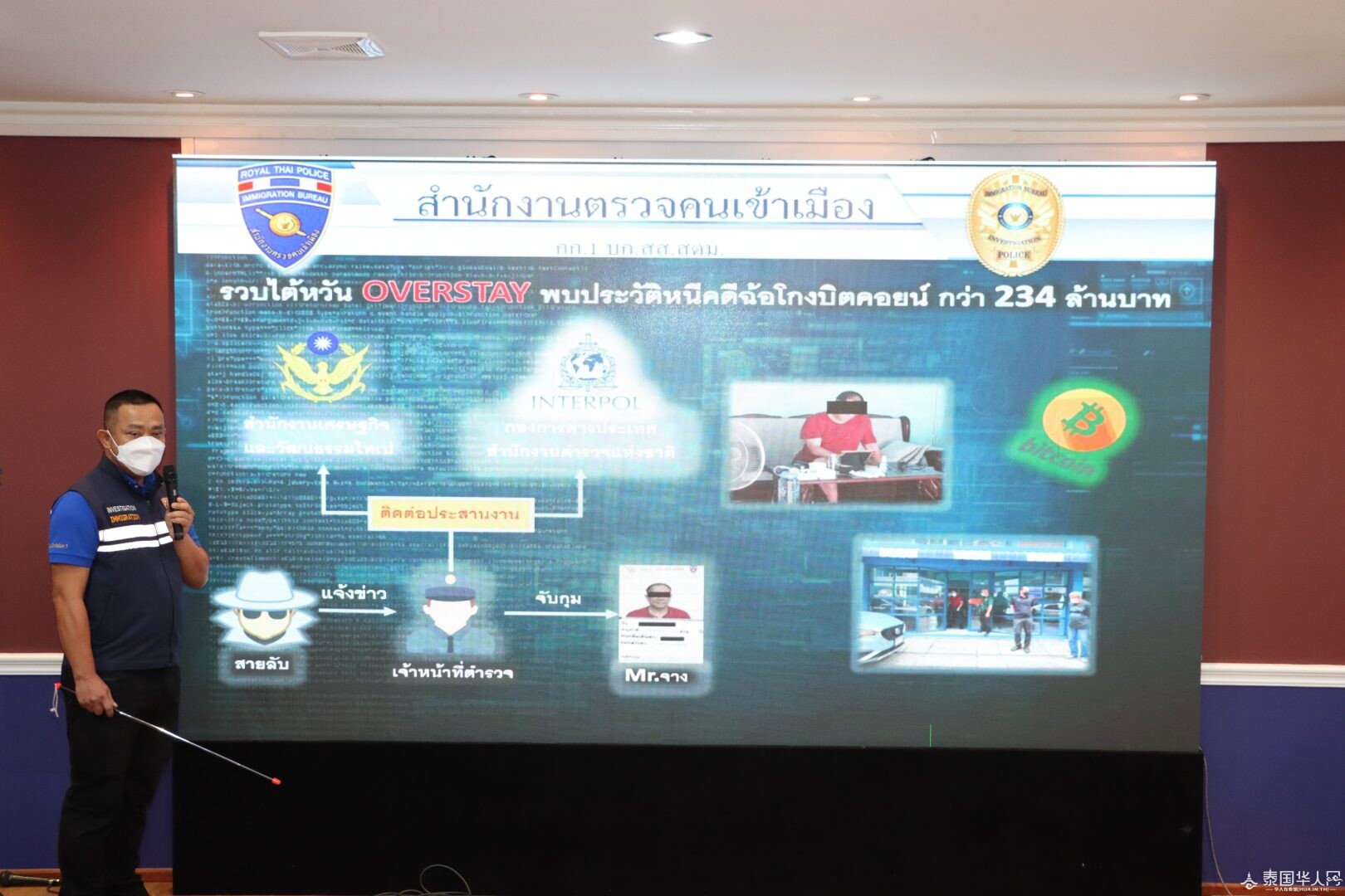 泰国华人网讯 7月6日,泰国国家移民局就近日有台湾逾期滞泰黑户在泰国境内被警方逮捕召开新闻发布会。经移民局警察调查发现,其曾有涉案金额达2亿泰铢的比特币诈骗犯罪史。