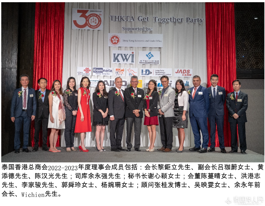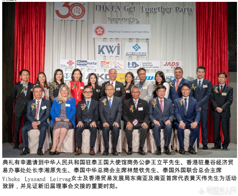 《关于泰国香港总商会》:泰国香港总商会于1992年在曼谷注册成立,商会旨在凝聚在泰港商力量,搭建泰港两地之间的桥梁,推动泰国与香港之间的贸易和投资,并在商贸、工业、投资、财经等方面积极地为会员朋友们打造互助的沟通合作环境,促进彼此的商务共赢。泰国香港总商会作为非牟利机构,有赖香港驻曼谷经济贸易办事处、香港贸易发展局,以及环球香港商业协会联盟的鼎力支持,通过举办一系列的商务交流联谊活动、座谈会、康乐慈善活动等,有效促进会员朋友们的机遇和人脉。商会一直与泰国中华总商会、泰国外商联合总会和泰国贸易协会等保持良好关系,并派代表与相关单位定期沟通交流,持续为在泰港商争取更便利的营商条件。(泰国香港总商会供稿) 原文:Thailand Headlines |