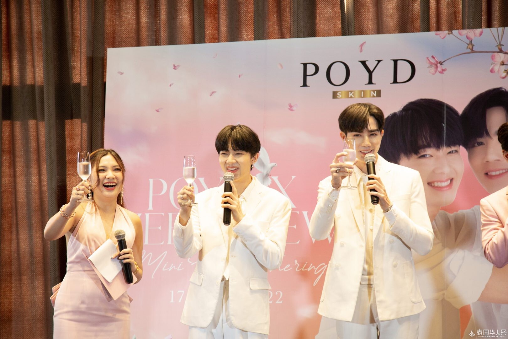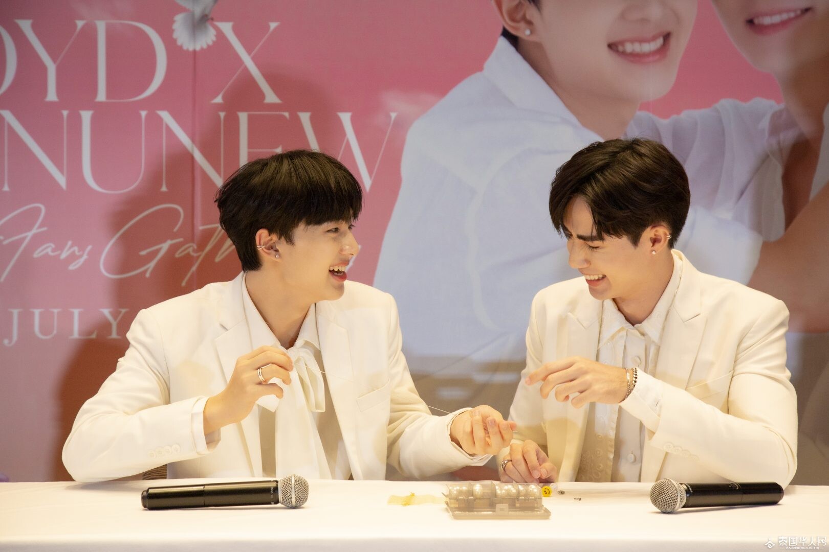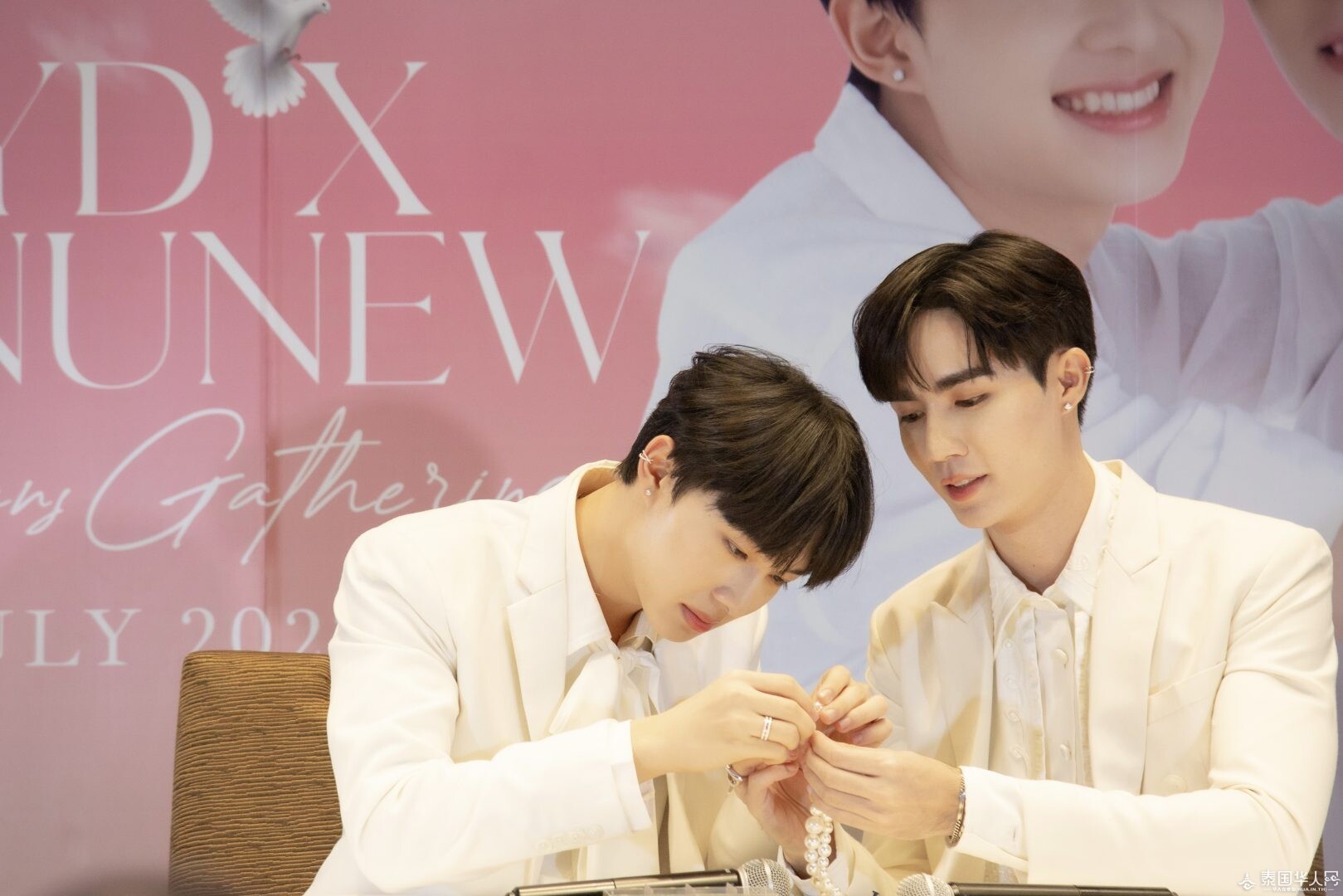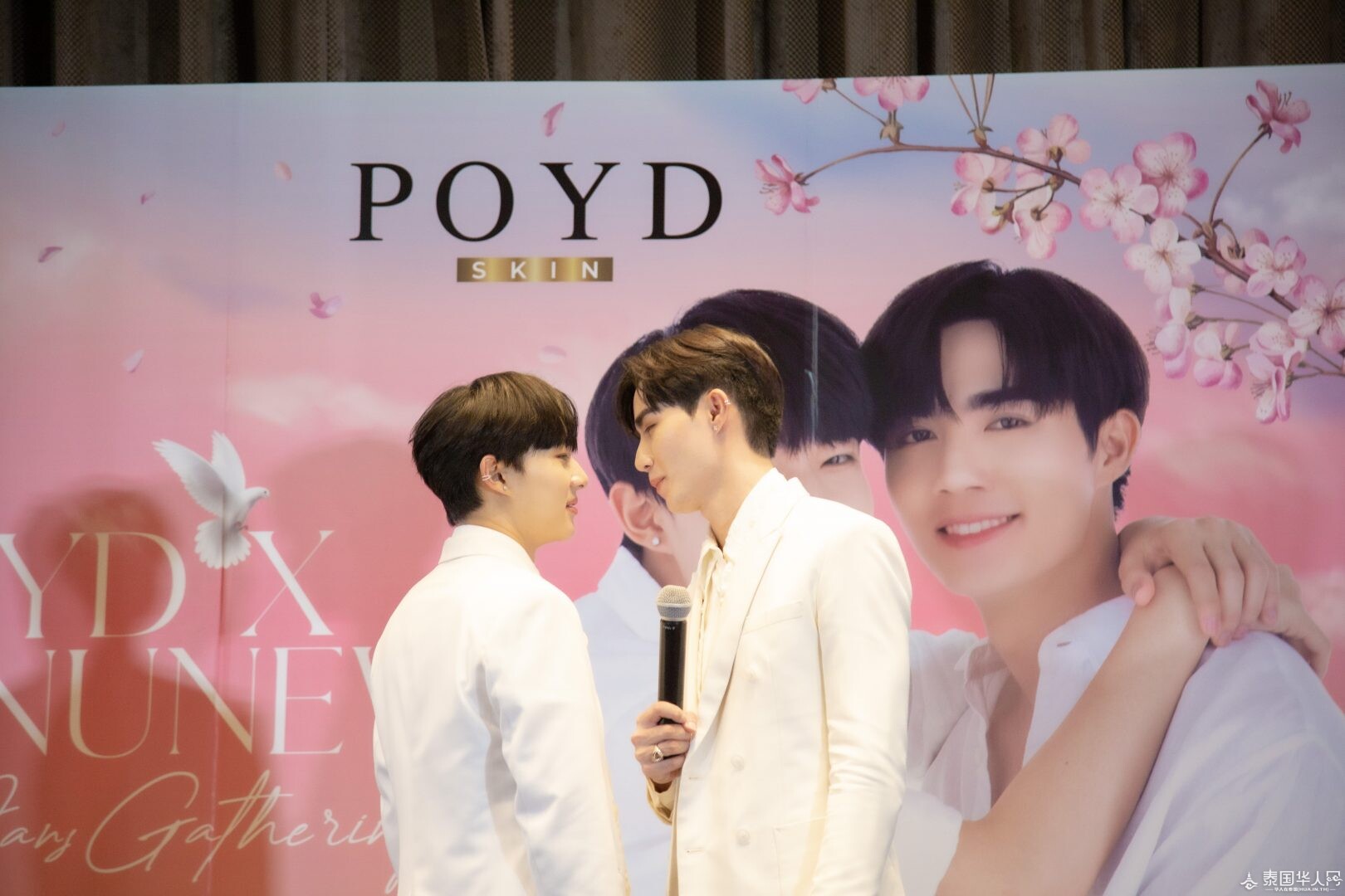 泰国华人网讯 Zee李海海和Nunew林景云凭借《甜心派》迎来了演艺生涯的又一个高峰,因此在中泰两国收获了大批粉丝。7月17日,泰国亚洲大众集团(大众)有限公司旗下护肤品牌POYD燕窝精华皂代言人线下见面会“POYDxZeeNuNew Mini Fans Gathering” 在 Siam@Siam Design Hotel Bangkok举行,Zee李海海和Nunew林景云与粉丝度过一场温馨浪漫的约会。此外,当天的活动氛围感十足,ZeeNunew线上线下人气火爆,#PoydxZeeNuNew1stFanmeeting 话题登上了泰国推特热搜趋势榜单第二。