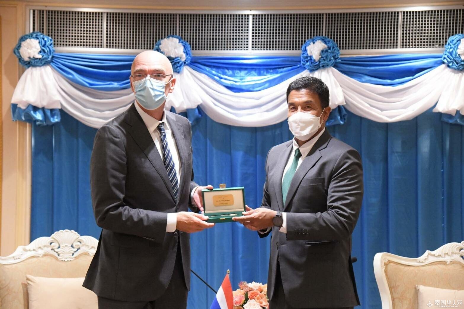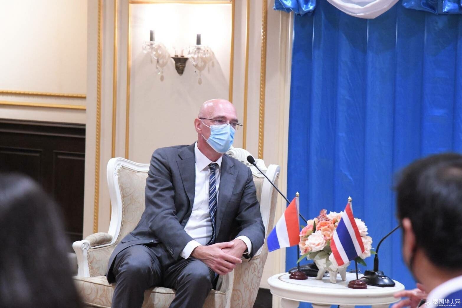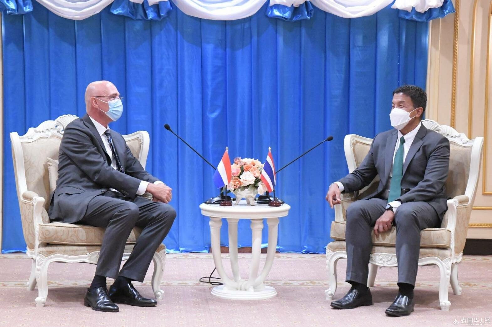 泰国华人网讯 8月9日,曼谷市长查察会见荷兰驻泰国大使Remcovan Wijngaarden。荷兰大使在上任后前来拜访,并介绍“橙绿日”(Orange Green Days)项目,寻求垃圾管理与水管理设计方面的合作,建立能够灵活应对气候变化的可持续发展城市和循环经济。会见期间,曼谷市长给大使赠送一把微型城市钥匙与花环水布作为纪念品。