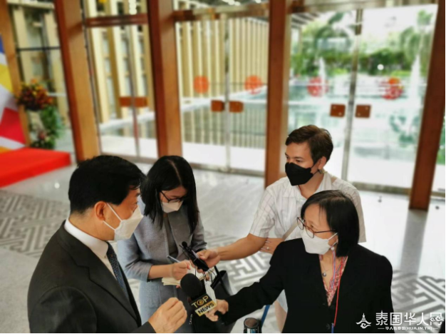 问题一:请问大使,今天的文化活动十分精彩、令人印象深刻,您认为今天的活动对促进中国软实力发展有什么作用? 答:今天,曼谷中国文化中心在成立10周年之际举办文化交流活动,请泰国甘拉雅尼音乐学院的学生们来到文化中心体验中国水墨画、古典乐器等传统文化,一起动手包饺子,还观看了展现中国古代文明的《三星堆:再现失落的文明》纪录片。刚刚,那些参加活动的泰国学生兴奋地告诉我,本次活动让他们了解了很多中国文化,收获满满,非常开心!特别值得一提的是,巴育总理夫人娜拉蓬副教授今天也来到了交流活动现场,和学生们一起体验中国文化,充分体现了娜拉蓬副教授对中国文化的关心和对中泰文化交流的重视。 中国有一句古语,“国之交在于民相亲,民相亲在于文相通”。娜拉蓬副教授的关心与支持,对促进两国文化交流与合作具有重要意义,也是对我们工作的重要鼓舞。中国驻泰国使馆将一如既往努力推动中泰文化交流与合作,促进两国民间友好。 问题二:请问大使,您对泰中两国互派留学生进行交流怎么看,未来是否会有更多的泰中两国学生到对方国家相互学习? 答:目前,中泰两国学生到对方国家学习的交流项目已经有很多了,我们会继续做下去。尽管新冠疫情对国际旅行带来了一些影响,但中方努力克服各种困难,现已恢复了泰国留学生的返华复学。我相信,随着对疫情的更好控制和防疫形势的不断改善,中泰双方各种形式的交流与合作会越来越活跃,将有更多学生到对方国家交流学习。 问题三:请问大使,泰国人很喜欢中国文化,而中方是否在中国传播和推广泰国文化艺术? 答:中泰两国地缘相近,人缘相亲,中泰两国文化积淀深厚、广泛融合。“中泰一家亲”更是深深扎根于两国人民的心中。建交47年来,两国各领域交流合作不断取得新成果,特别是中泰文化交流日益活跃,成为中泰关系的重要亮点。 丰富多彩的泰国文化艺术具有独特的魅力,得到了广大中国人民的欢迎与喜爱。很多泰国文化经典在中国都广为人知。需要特别指出的是,在娜拉蓬副教授和习近平主席夫人彭丽媛教授两人的牵线搭桥下,泰国甘拉雅尼音乐学院和中国南京艺术学院开展了校际交流合作,甘拉雅尼音乐学院的艺术家们到中国演出、演奏泰国古典音乐,南京艺术学院的艺术家们也同样到泰国来演出。相信在双方的共同关心与努力下,中泰两国文化艺术合作还将再上新台阶。 问题四:请问大使,中方如何在泰国推进文化娱乐产品合作? 答:中泰文化娱乐产品的交流合作是双边关系的一个新增长点。近年来,来自中国的网络文化产品、网游等得到了泰国民众特别是青年人的好评与欢迎。 当前,中泰两国文化交流规模很大、渠道很多,参与文化交流的主体也包括教育机构、文艺团体、文化产业界等多方面,为促进两国关系和两国人民间相互了解和友谊发挥了巨大作用,相信今后这个作用还会越来越大。以曼谷中国文化中心为例,疫情前每年在文化中心举办的活动不下100场,从这一个角度就可以看到中泰文化交流的丰富多彩。我们的传统文化项目“欢乐春节”活动也已经走入第18个年头,成为重要文化品牌,在中泰都有着广泛的影响,是促进两国人民友谊与亲情的重要平台,我们会继续把它办好。相信未来两国在该领域的合作还将取得进一步长足发展。