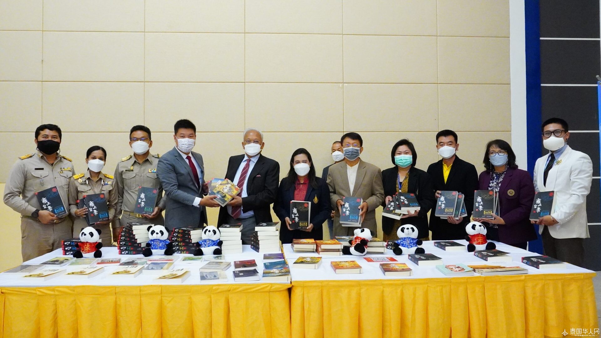 在合作院校教学成果展区,设有普吉孔院素叻分部、宋卡王子大学素叻校区,以及普吉孔院各签约教学点等10所合作院校的中文教学成果展位,吸引庆典师生驻足观展。 在中华图书外译泰国巡展展区,设有长江文艺出版社和麦迪逊出版社的数十种中华外译图书,其中《康熙大帝》《雍正皇帝》《三国演义》等中文图书均有泰文译本。参展图书除用来展览外,普吉孔院还代表两家出版社向普吉孔院各教学点及合作院校进行了捐赠。