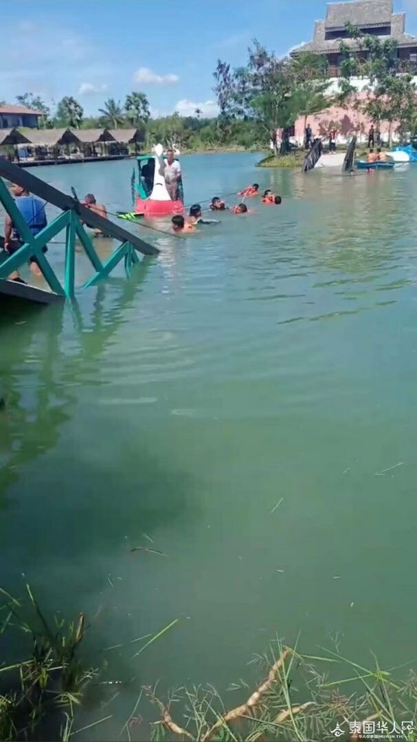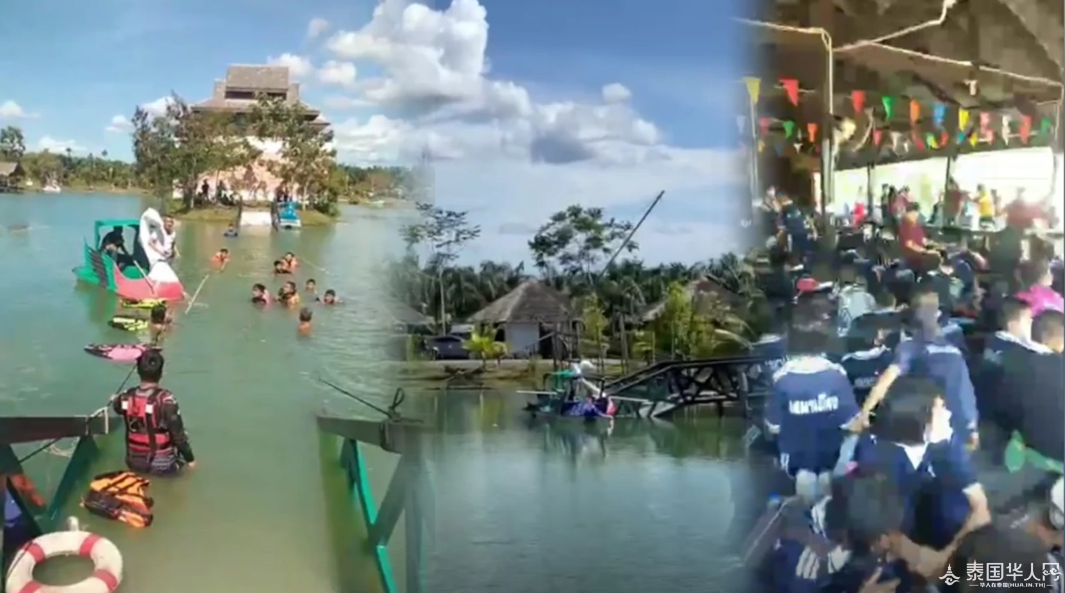 泰国华人网讯 8月19日,洛坤府Chian Yai县Bansuankaraked农家乐内的一座横跨水面的铁桥断裂,导致当时正在过桥的50名师生掉进河里,初步致6名学生受伤。