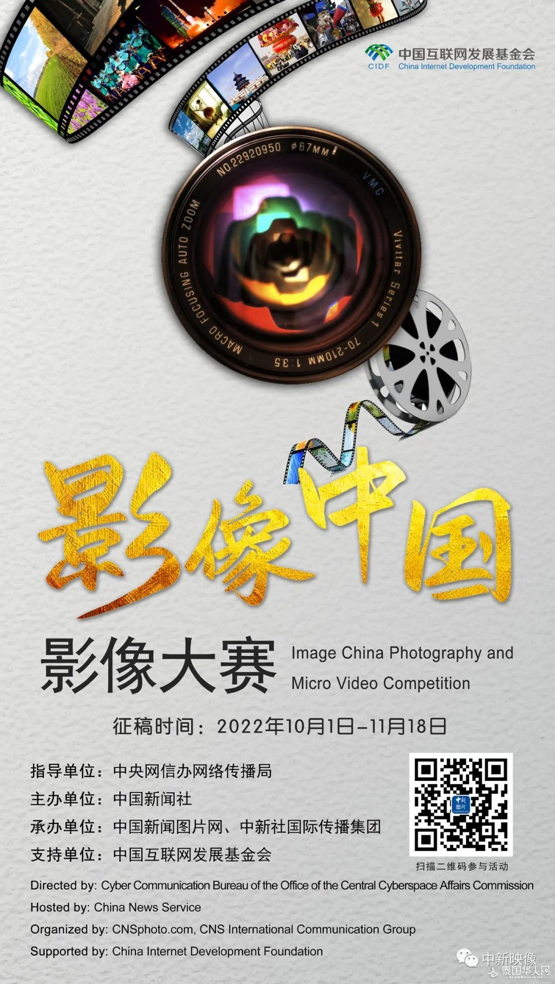 日出长城耀金山 林科贤/摄, 锦绣永宁 lixinxy /摄 恭喜以上投稿者!请投稿人以“投稿作品名+投稿昵称+真实姓名”为标题发送邮件至[email protected],提供“第N周优秀作品+投稿作品名+投稿昵称+真实姓名+手机号+邮寄地址”等信息及图片作品原片(第N周为对应获奖的期数),以便核对及安排证书等。对公示内容有异议的,请以实名书面方式反映,并提供必要证明材料。 组织机构 指导单位:中央网信办网络传播局 主办单位:中国新闻社 承办单位:中国新闻图片网、中新社国际传播集团 支持单位:中国互联网发展基金会 协办单位:中国新闻社各分社、中国建筑文化中心、中国通信摄影协会手机摄影分会、500px、元景云、美丽云、清华大学新闻与传播学院、中国人民大学新闻学院、浙江大学、宁波大学、宁波诺丁汉大学、四川省民族文化影像艺术协会、马来西亚一带一路委员会、洛杉矶中国文化发展中心、全美中文学校协会、葡新国际文化传媒、华人头条、泰国头条新闻、日本东方新报、埃及《中国周报》、罗马尼亚《欧洲侨报》、西班牙欧浪网、宁波市委网信办、宁波市海曙区委宣传部等 征稿主题 自然风光:聚焦中国的自然之美、生物多样性,展现美丽中国、生态中国。 人间烟火:聚焦中国的民俗文化、社会生活,展现文化中国、人文中国。 未来之光:聚焦科技改变未来、创新引领发展,展现科技中国、创新中国。 美美与共:聚焦经济、文化、体卫等领域中外交流日渐频繁的盛况,用影像表达中外“美美与共”的主题。 中国印象:记录中国本土之外,世界各地与中国有关的影像。 征稿组别 1.高校组 高校组征集对象为高校学生,包括中国学生和留学生。 2.社会组 社会组征集对象为高校学生以外的摄影爱好者。境内设31个省(自治区、直辖市)分赛区及中国通信摄影协会手机摄影分会等机构赛区,同时设置日本、泰国、马来西亚、葡萄牙等境外分赛区。 征集时间 2022年10月1日至11月18日 大赛奖项 (一)终评 1.图片类 一等奖5名,二等奖15名,三等奖25名,优秀奖50名。 2.微视频类 一等奖5名,二等奖15名,三等奖25名。 3.人气奖(图片、微视频一起)共30名。 特别说明:图片类、微视频类奖项数为高校组、社会组合计,不分主题评奖。 (二)周评 每周评选优秀作品(图片、微视频一起)15名。 (三)评选说明 人气奖在所有投稿作品中经大众投票产生。除人气奖外的其他奖项由业内专家及组织单位代表组成评审团评选得出,获奖者将获颁证书。评选结果将公示7天,公示结束后无异议,即为最终结果。公示结束后拟举办颁奖典礼及优秀作品展,同时推出线上展览。进入最终展览展示的作品将给付稿费,税金由获奖者承担。 稿件要求 一、作品要求 1.图片类投稿,文件须为JPG格式,长边不低于3000像素,大小不小于1M,彩色、黑白不限,单幅、组照均可,组照图片数量应在5至12幅之间;微视频类投稿,文件时长要求2.5分钟以内,MP4、MPG、MOV格式均可,像素不低于1080p,文件大小1G以内。拍摄时间不限,拍摄设备不限,作品描述中须注明拍摄时间、地点、拍摄内容简述,中英文兼具更佳。 2.作品须保留其原始信息,对于不能提供原始作品信息的参赛作品,视为无效作品。 3.投稿作品须为投稿人本人拍摄,作者对作品拥有独立、完整的著作权。如有抄袭、雷同等情况,视为无效投稿,相关责任由投稿人承担。 4.不得对摄影作品原始影像删改、添加、技术合成等,可适当对作品亮度、对比度、色彩饱和度及构图剪裁进行必要的后期处理,包括转换为JPG格式。 5.不接受翻拍作品投稿。 6.参赛作品将视为作者默认同意组织单位及关联单位机构、合作机构用于相关主题公益宣传。 二、权责说明 1.投稿作品不得侵犯他人的著作权、肖像权、名誉权、隐私权。若有第三方对作品中的人、建筑或其他事物(包括但不限于视频作品中所使用的音乐、字体、素材等)提出权利方面的声明或不满,投稿人应对投稿作品引发或可能引发的法律事务承担全部责任。 2.对于足以妨害公序良俗的作品及行为,一经发现将取消入选资格。“妨害公序良俗的作品及行为”包括但不限于可能严重误导公众认知、具有欺诈性质等一切违反法律、道德、公共秩序或善良风俗的情形。 3.本次活动不收取任何费用,不设退稿。参赛作品著作权归原参赛人所有,参赛人将授予组织结构单位及关联方用于主办公益性质推广宣传活动中,通过各种渠道(包括但不限于网络、新闻发布或其他媒体、线下展示推广会等活动)使用作品(保留获奖作品摄影师署名权),使用地域不受限制,并允许主办方对作品进行修改和裁切。 4.大赛组织方有权将图片类投稿作品同步上传至中国新闻图片网(www.cnsphoto.com),并视为签约摄影师作品,用于展示和销售,如有第三方采用,将向版权所有者支付相应稿费。 5.投稿人一旦上传作品,即视为同意并遵守以上规则。凡不符合征稿要求的作品,一律取消参赛资格。 6.主办方工作人员、本次评选评委(含直系亲属)的作品不可参加送评,一经发现将取消参赛资格。 7.本次活动最终解释权归主办方所有。 三、注意事项 投稿人注册与填写信息必须真实有效,并保持通讯畅通。主办方将通过电话和电子邮箱两种方式与入围作品投稿人联系,要求投稿人在指定日期内提供相关资料,逾期者视为自愿放弃。因投稿人未能提供准确的信息资料而导致未