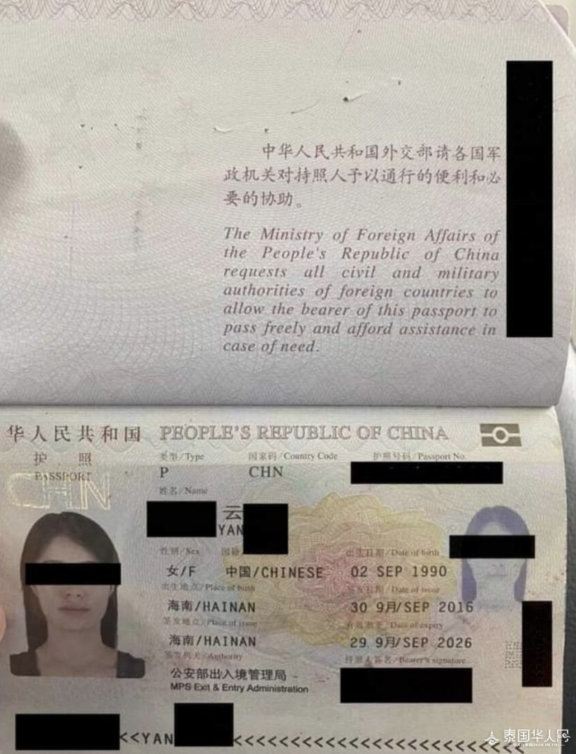 泰国华人网讯 据泰国媒体报道,此前为警方提供了大量灰产人员信息的泰国政客、浴室大王初威再爆新料,并公布了一张护照首页照片,并称该护照页上的女子是给灰产人士寻找藏身之处的代理。 初威在其所发布的帖文中写道:之前我给警方提供的消息已经帮警方抓住了大批中国灰产人士,而今天公布的这张护照首页照片上的女子,她其实就是灰产人士们的代理,帮他们找藏身之处的,如果警方抓住了这个女代理,应该就能知道灰产人士都躲在哪里了。另外,我还得到消息称灰产人士的新藏身点在Sathorn-Taksin、Sathorn21巷口一片,这些消息就留给泰国国家警察总署们去深入调查了。