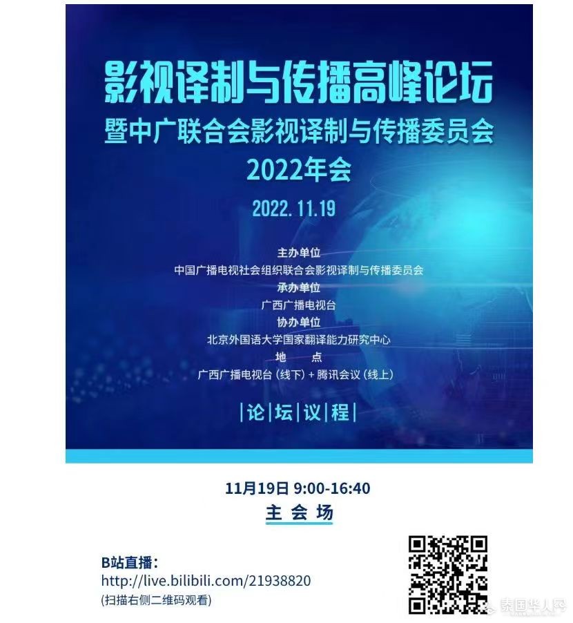 2022年11月19日,中国广播电视联合会影视译制与传播委员会将在线上举行影视译制与传播高峰论坛暨中广联合会影视译制与传播委员会2022年会。本届论坛由广西广播电视台承办。与会专家学者与机构代表将深入探讨影视译制与传播的理论与实践问题。