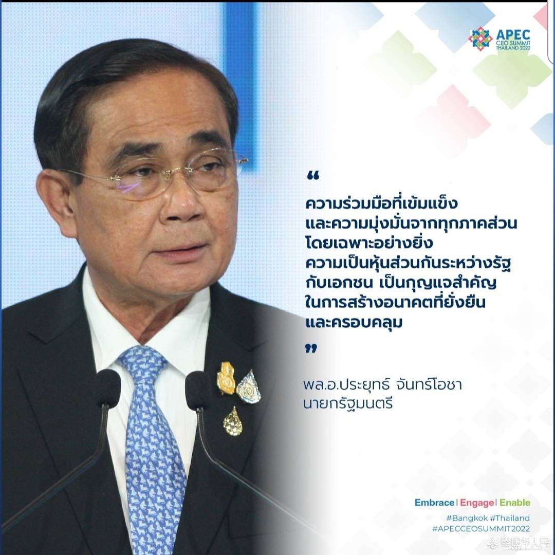 泰国华人网讯 2022年亚太经合组织(APEC)工商领导人峰会于16日-18日在泰国首都曼谷举行,今年峰会以“拥抱 合作 赋能”为主题,与会人士围绕可持续发展、包容性增长、数字化等议题展开讨论,旨在推进亚太地区和全球经济共同繁荣。经济体领导人和商界代表在峰会讨论论坛上,分别提到的重要内容如下: