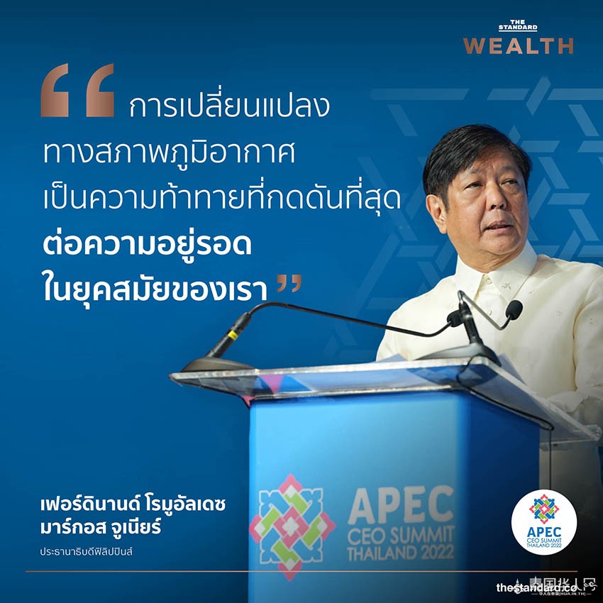 菲律宾总统马科斯,同意气候变化、健康和粮食安全是全球经济面临的主要挑战,并将气候变化称为 “我们这个时代生存的最紧迫挑战”。