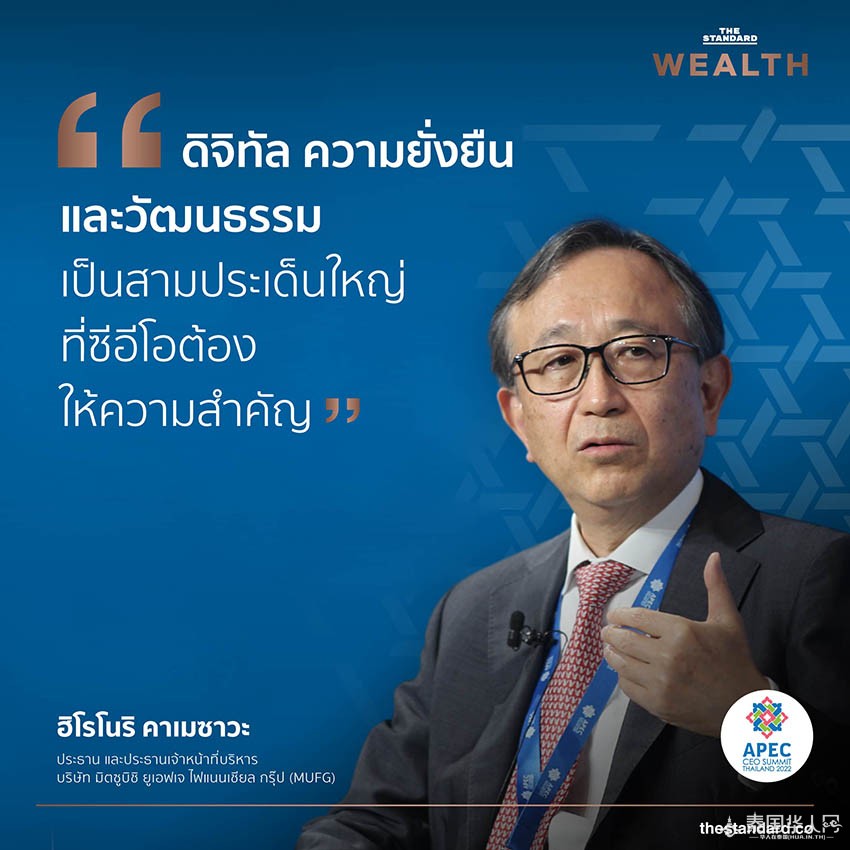 三菱日联金融集团首席执行官亀泽宏规表示,数字化、可持续发展和文化是 企业家CEO 需要关注的三大问题。
