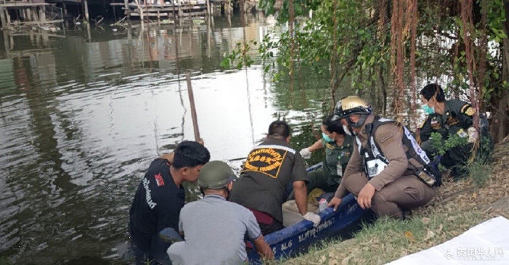 泰国华人网讯 近日,在巴吞他尼府Khlong Luang区附近的运河里发现了一具女尸,随后警方立即前往现场展开调查。 据调查了解,死者面部朝下,身穿橘色坎肩上衣蓝色牛仔裤,随即打捞上来进行全方位检查发现,死者头部有明显被钝器击打的痕迹,右手有淤青,左手佩戴金黑色手镯,食指上带着钻戒, 肚脐上也襄着钻石配饰,包里除了车钥匙没有其他任何可以证实自己身份的文件。