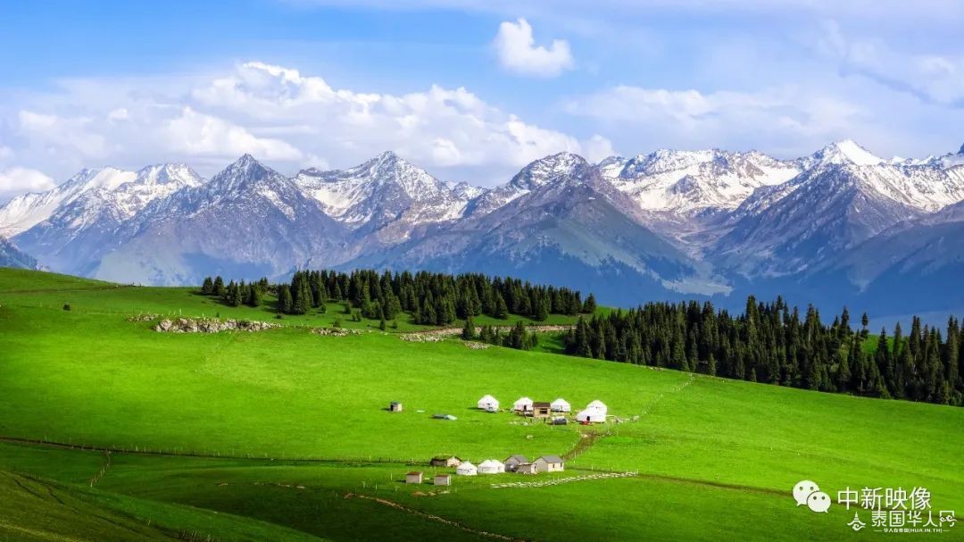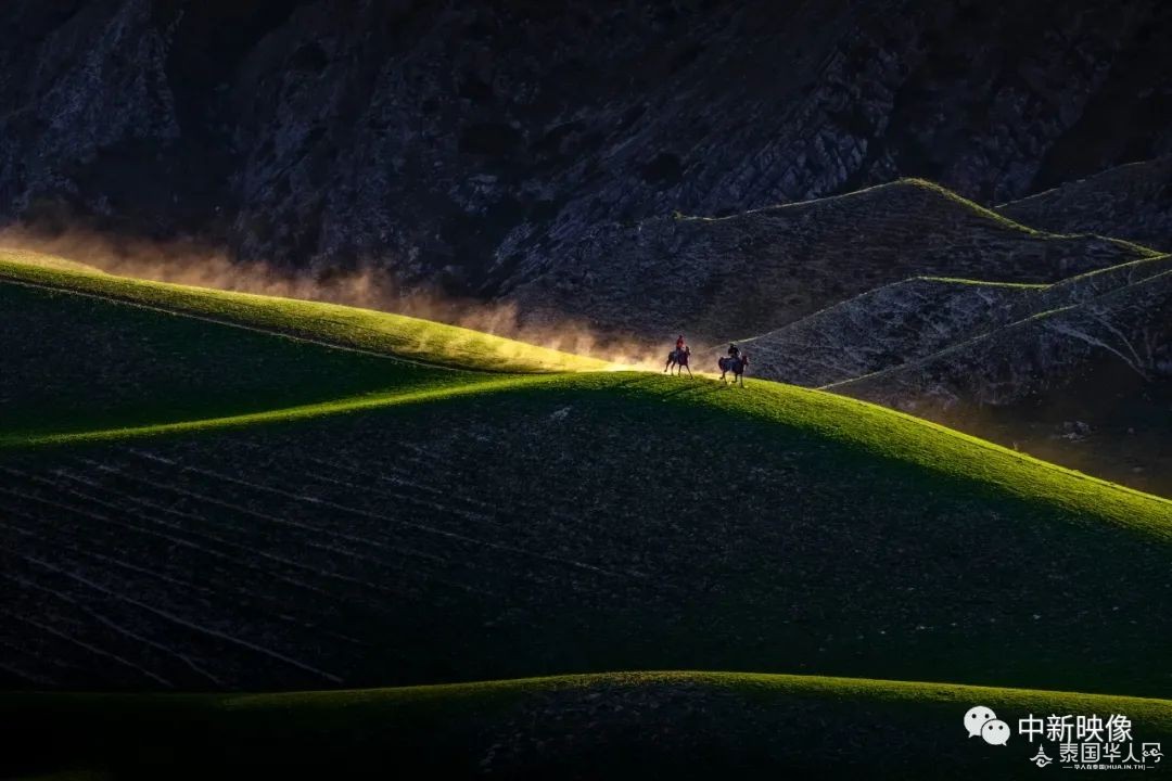 山间弛聘 夕照残雪/摄摄于新疆维吾尔自治区特克斯县喀拉峻大草原