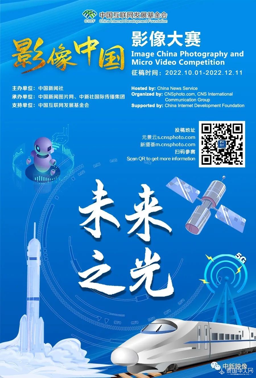 人类是一个整体,地球是一个家园。和衷共济,和合共生,共同朝着构建人类命运共同体方向不断迈进,才能共同创造更加美好的未来。由中央网信办网络传播局指导、中国新闻社主办的“影像中国”影像大赛将运用网络征稿平台,开通国内及国际多个分赛区,广泛征集图片和微视频作品。本次大赛以影像为媒介,以网络为桥梁,打破语言、时间和空间的界限,从平民化、生活化的角度,从各个方面记录中国、展示中国,让世界更好地认识中国、了解中国,进一步促进相互理解和开放包容,增进中国与各国民心相通,为推动构建人类命运共同体作出积极贡献。大赛自启动征稿以来,得到社会各界的广泛关注和积极参与。为了让更多拍摄者有充分的时间拍摄更满意的佳作,在大赛中展示“影像中国”,经组织单位研究决定,将大赛征集截止时间延期至2022年12月11日,欢迎积极投稿! 组织机构 指导单位:中央网信办网络传播局 主办单位:中国新闻社 承办单位:中国新闻图片网、中新社国际传播集团 支持单位:中国互联网发展基金会 协办单位:中国新闻社各分社、中国建筑文化中心、中国通信摄影协会手机摄影分会、500px、元景云、美丽云、清华大学新闻与传播学院、中国人民大学新闻学院、浙江大学、兰州大学新闻与传播学院、宁波大学、宁波诺丁汉大学、四川省民族文化影像艺术协会、马来西亚一带一路委员会、洛杉矶中国文化发展中心、全美中文学校协会、葡新国际文化传媒、华人头条、泰国头条新闻、日本东方新报、埃及《中国周报》、罗马尼亚《欧洲侨报》、西班牙欧浪网、宁波市委网信办、宁波市海曙区委宣传部、开元网等。 征稿主题 自然风光:聚焦中国的自然之美、生物多样性,展现美丽中国、生态中国。 人间烟火:聚焦中国的民俗文化、社会生活,展现文化中国、人文中国。 未来之光:聚焦科技改变未来、创新引领发展,展现科技中国、创新中国。 美美与共:聚焦经济、文化、体卫等领域中外交流日渐频繁的盛况,用影像表达中外“美美与共”的主题。 中国印象:记录中国本土之外,世界各地与中国有关的影像。 征稿组别 1.高校组 高校组征集对象为高校学生,包括中国学生和留学生。 2.社会组 社会组征集对象为高校学生以外的摄影爱好者。境内设31个省(自治区、直辖市)分赛区及中国通信摄影协会手机摄影分会等机构赛区,同时设置日本、泰国、马来西亚、葡萄牙等境外分赛区。 征集时间 2022年10月1日至12月11日 大赛奖项 (一)终评 1.图片类 一等奖5名,二等奖15名,三等奖25名,优秀奖50名。 2.微视频类 一等奖5名,二等奖15名,三等奖25名。 3.人气奖(图片、微视频一起)共30名。 特别说明:图片类、微视频类奖项数为高校组、社会组合计,不分主题评奖。 (二)周评 每周评选优秀作品(图片、微视频一起)15名。 (三)评选说明 人气奖在所有投稿作品中经大众投票产生。除人气奖外的其他奖项由业内专家及组织单位代表组成评审团评选得出,获奖者将获颁证书。评选结果将公示7天,公示结束后无异议,即为最终结果。公示结束后拟举办颁奖典礼及优秀作品展,同时推出线上展览。进入最终展览展示的作品将给付稿费,税金由获奖者承担。 稿件要求 一、作品要求 1.图片类投稿,文件须为JPG格式,长边不低于3000像素,大小不小于1M,彩色、黑白不限,单幅、组照均可,组照图片数量应在5至12幅之间;微视频类投稿,文件时长要求2.5分钟以内,MP4、MPG、MOV格式均可,像素不低于1080p,文件大小1G以内。拍摄时间不限,拍摄设备不限,作品描述中须注明拍摄时间、地点、拍摄内容简述,中英文兼具更佳。 2.作品须保留其原始信息,对于不能提供原始作品信息的参赛作品,视为无效作品。 3.投稿作品须为投稿人本人拍摄,作者对作品拥有独立、完整的著作权。如有抄袭、雷同等情况,视为无效投稿,相关责任由投稿人承担。 4.不得对摄影作品原始影像删改、添加、技术合成等,可适当对作品亮度、对比度、色彩饱和度及构图剪裁进行必要的后期处理,包括转换为JPG格式。 5.不接受翻拍作品投稿。 6.参赛作品将视为作者默认同意组织单位及关联单位机构、合作机构用于相关主题公益宣传。 二、权责说明 1.投稿作品不得侵犯他人的著作权、肖像权、名誉权、隐私权。若有第三方对作品中的人、建筑或其他事物(包括但不限于视频作品中所使用的音乐、字体、素材等)提出权利方面的声明或不满,投稿人应对投稿作品引发或可能引发的法律事务承担全部责任。 2.对于足以妨害公序良俗的作品及行为,一经发现将取消入选资格。“妨害公序良俗的作品及行为”包括但不限于可能严重误导公众认知、具有欺诈性质等一切违反法律、道德、公共秩序或善良风俗的情形。 3.本次活动不收取任何费用,不设退稿。参赛作品著作权归原参赛人所有,参赛人将授予组织结构单位及关联方用于主办公益性质推广宣传活动中,通过各种渠道(包括但不限于网络、新闻发布或其他媒体、线下展示推广会等活动)使用作品(保留获奖作品摄影师署名权),使用地域不受限制,并允许主办方对作品进行修改和裁切。 4.大赛组织方有权将图片类投稿作品同步上传至中国新闻图片网(www.cnsphoto.com),并视为签约摄影师作品,用于展示和销售,如有第三方采用,将向版权所有者支付相应稿费。 5.投稿人一旦上传作品,即视为