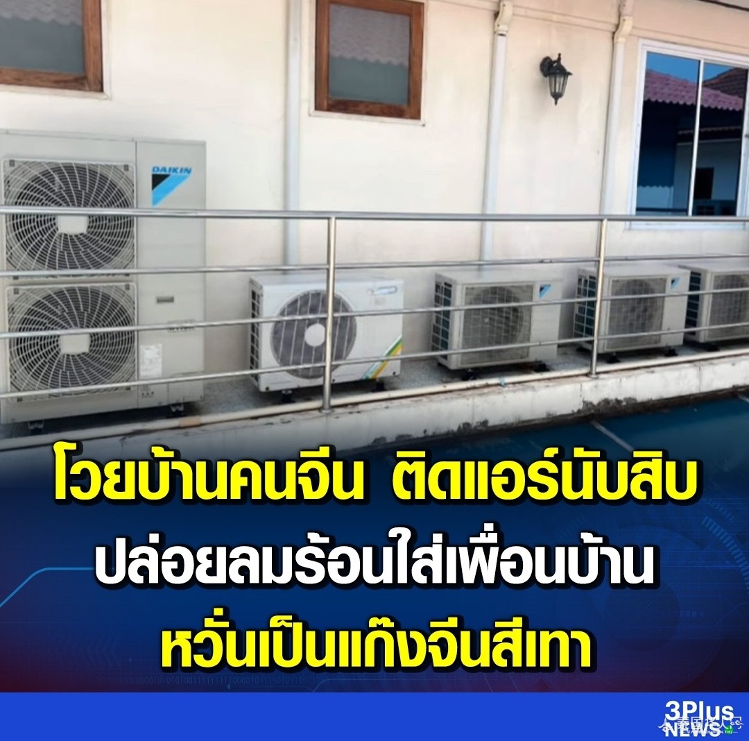 泰国华人网讯 12月1日,一名脸书博主发布一则家住在曼谷Suan Luang区的网友投稿,该网友称邻居家安装了10台空调,空调外机的热风全对着自己家吹,希望有关部门能帮忙解决此事。