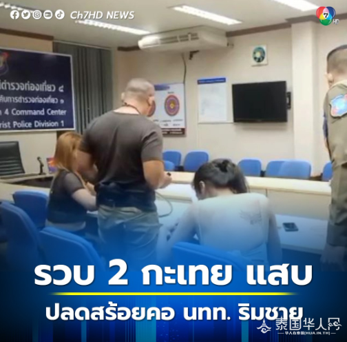 泰国华人网讯 12月2日凌晨3时,芭堤雅警方在Royal Garden Plaza商场对面的海滩前治安,同时视察第三性别人士存在的违法行为。 警方发现2名第三性别人士正在试图猥亵和趁机偷走一名俄罗斯游客的项链,随后警方逮捕了这2名涉事第三性别人士,分别为38岁的吉迪蓬和29岁的阿尼瓦。
