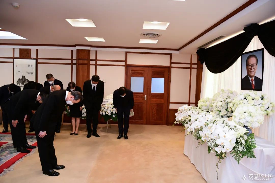 12月2日,中国侨商联合会会长、正大集团资深董事长谢国民,中国侨商联合会常务副会长、正大集团董事长谢吉人,正大集团CEO谢镕仁,前往灵堂吊唁,对江泽民先生逝世表示沉痛哀悼和无限哀思。他们在灵堂前肃立默哀,向江泽民先生遗像深深三鞠躬,在吊唁簿上签名、留言,表达对江泽民先生的深切哀悼和崇高敬意。中国驻泰国大使韩志强对正大集团吊唁江泽民先生深表感谢。