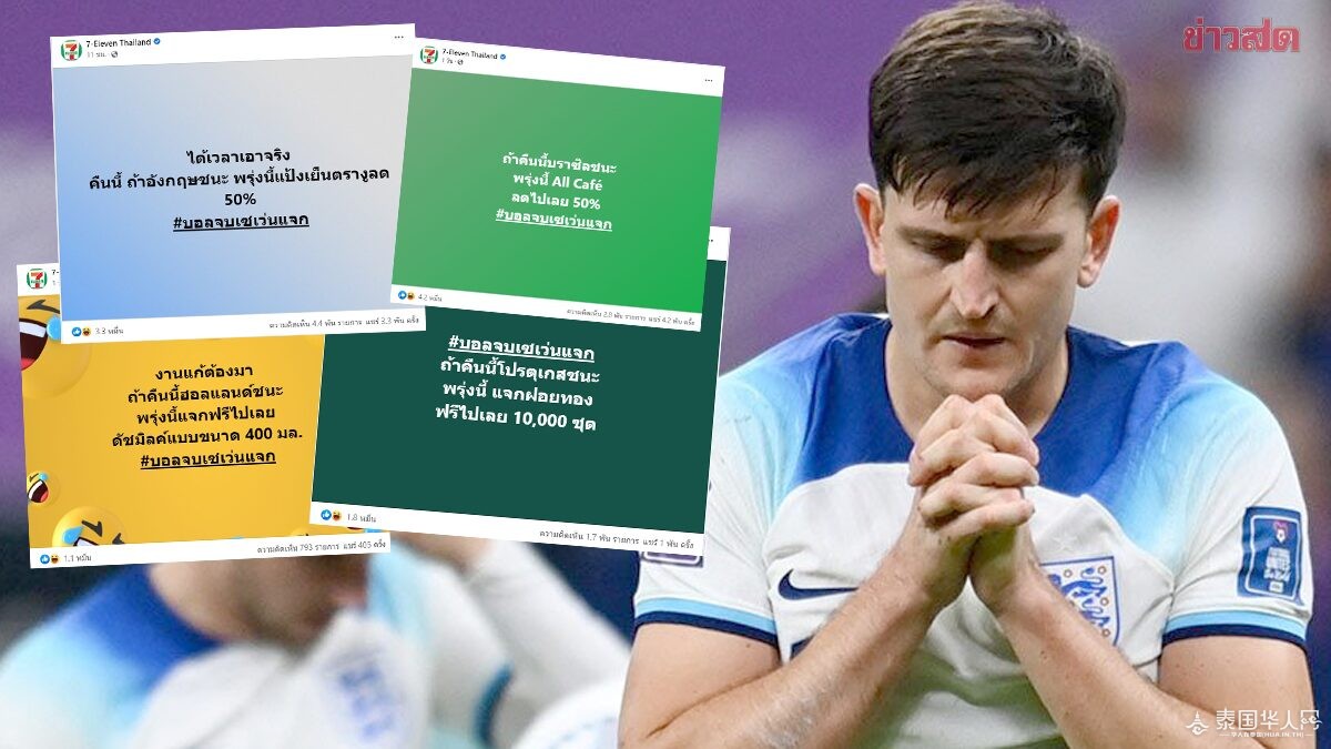 除了激烈的比赛引人注目外,7-Eleven泰国的主页也同样看点连连。该账号在其官方页面发起世界杯1/4决赛各轮结果预测,并顺势开展促销活动。其中最有趣的是最,该账号预测哪一队赢,这一队就一定会输。很多网友调侃到“真是玄了,反正顾客啥也拿不到呗!”、“7-11还挺会玩!” 巴西对阵克罗地亚当晚,7-Eleven泰国主页直接放话:“要是巴西赢,全场咖啡半价!”比赛过程中,主页还说:“巴西踢成这样,咖啡估计也卖不完了。”最终,克罗地亚点球大胜巴西。 之后到了阿根廷对战荷兰,主页表示:“再来一波,如果今晚荷兰赢了,明天赠送400毫升荷兰牛奶!”最终,阿根廷点球大胜巴西。 摩洛哥对战葡萄牙,主页发文:“如果今晚葡萄牙赢了,明天赠送甜蛋丝10000份!”最终,摩洛哥战胜葡萄牙。 最后到的法国对战英国,主页表示:“这回玩真的了,今晚如果英国赢了,明天蛇牌爽身粉半价!”最终,法国战胜英国。 (编译:徐瑞阳 四点零翻译工作坊;审校:wan ;来源:khaosod) |