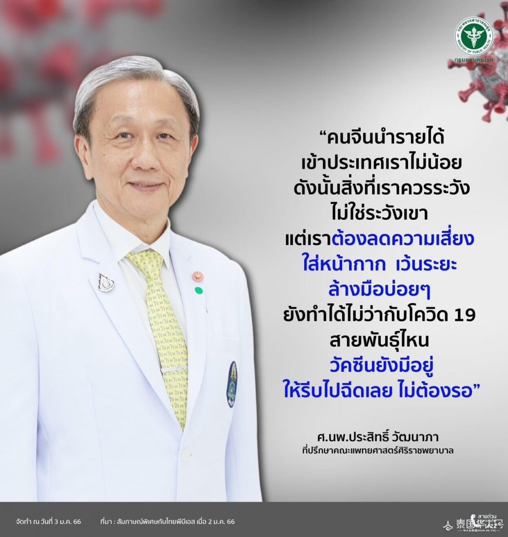 其中,泰国医疗界“四大天王”,即诗丽吉医院前医学博士巴士、朱拉隆功大学医学院新探健康发展研究中心主任缇拉瓦教授、参议院公共卫生委员会副主席查棱差、Vichaiyut医院呼吸疾病科专家玛努博士此前均陆续针对此问题发表看法。