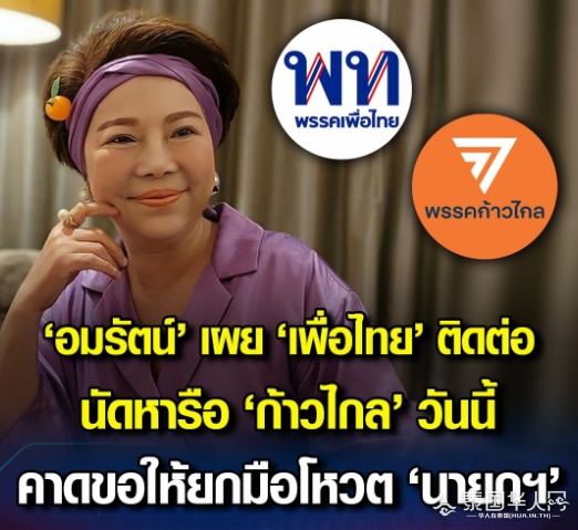 泰国华人网讯 8月9日,据泰媒报道,前进党管理委员会成员阿玛腊在一档新闻访谈节目中透露,为泰党已经与该党秘书长差塔瓦进行了电话联系,希望能够在今日举行会谈。此次会谈预计将探讨希望前进党议员为为泰党投票的问题。 阿玛腊表示,虽然她本人并非国会议员,因此无权为为泰党投票,但即便有权也不会支持,因为她对为泰党心存怨恨。