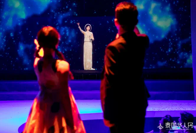 今年,他们在泰国曼谷举办了一场“浮空投影演唱会”,利用先进的虚拟投影技术,让逝去的邓丽君“重临舞台”,与来自中国、马来西亚、日本、泰国的四位“小邓丽君”同台演唱。 8月12日当晚,曼谷暹罗天地顶楼True Icon Hall大厅座无虚席。曼谷城中华人华侨,万人空巷,倾巢而来。无数泰国青年,也带着自己的长辈父母,前来一睹邓丽君“再临人间”的容颜。许多熟悉的面孔,显赫的名字,也出现在台下的观众席里。