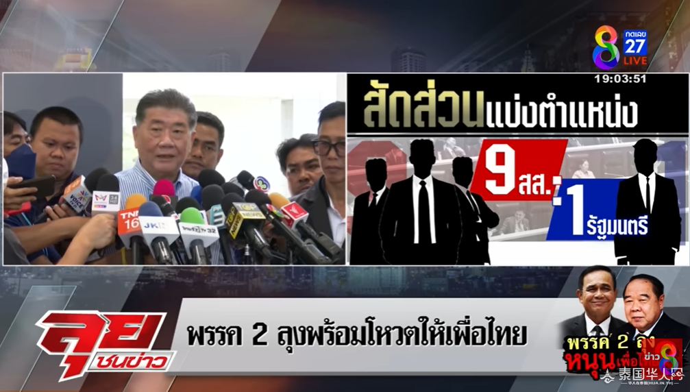 泰国华人网讯 据多家泰国媒体最近报道,泰国政治僵局或将在一场涉及339张选票的秘密交易中告一段落。最终,为泰党的总理候选人瑟塔有望成为泰国第30位总理。在组阁的秘密交易中,新一届的执政党即将以每9名议员对应一名内阁部长的方式进行分配内阁部长的位置。然而,由于各政党仍在谈判中,内阁部长职位的分配可能尚有变动。目前的情况如下:
