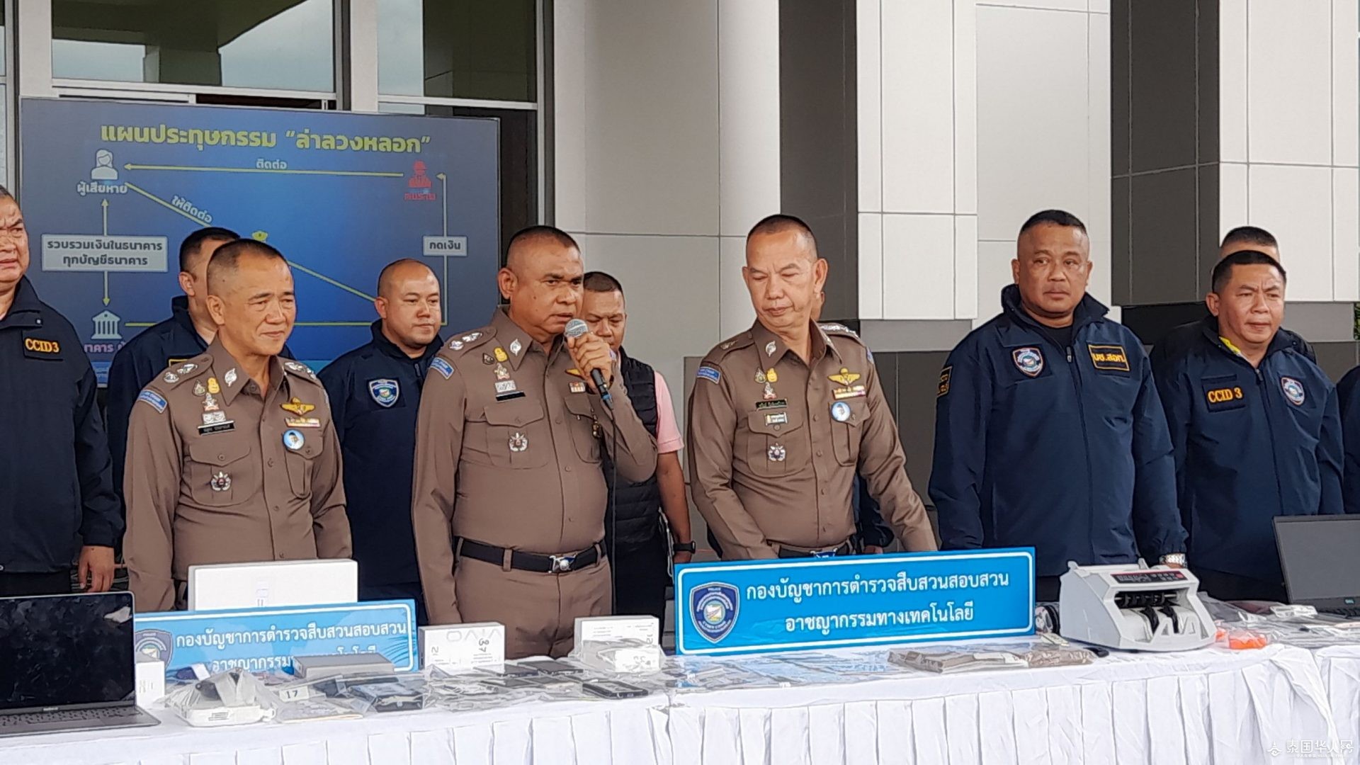泰国华人网讯 8月15日,泰国科技犯罪调查局召开新闻发布会,公布“追捕诈骗集团”行动成果。此次行动成功抓获8名犯罪嫌疑人,涉案价值超过1000万泰铢。