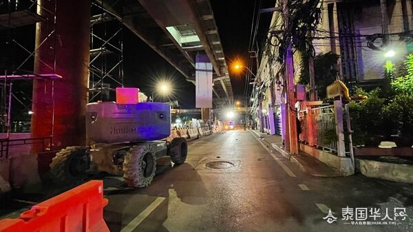 经初步调查,事发前,施工人员正在使用两台起重机进行高架桥钢板的拆除和吊装工作。突然,一块钢板脱落,重击了起重机和脚手架,造成工人受伤。警方随即封锁了事故发生地点的Serithai路段,以确保道路安全。事故发生后,工人们已清理了道路上的钢板和脚手架,不会影响正常的交通通行。