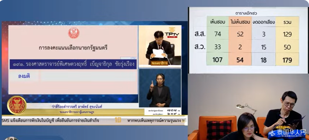 泰国国会投票选举总理情况实时更新,瑟塔已获得33名参议员投票