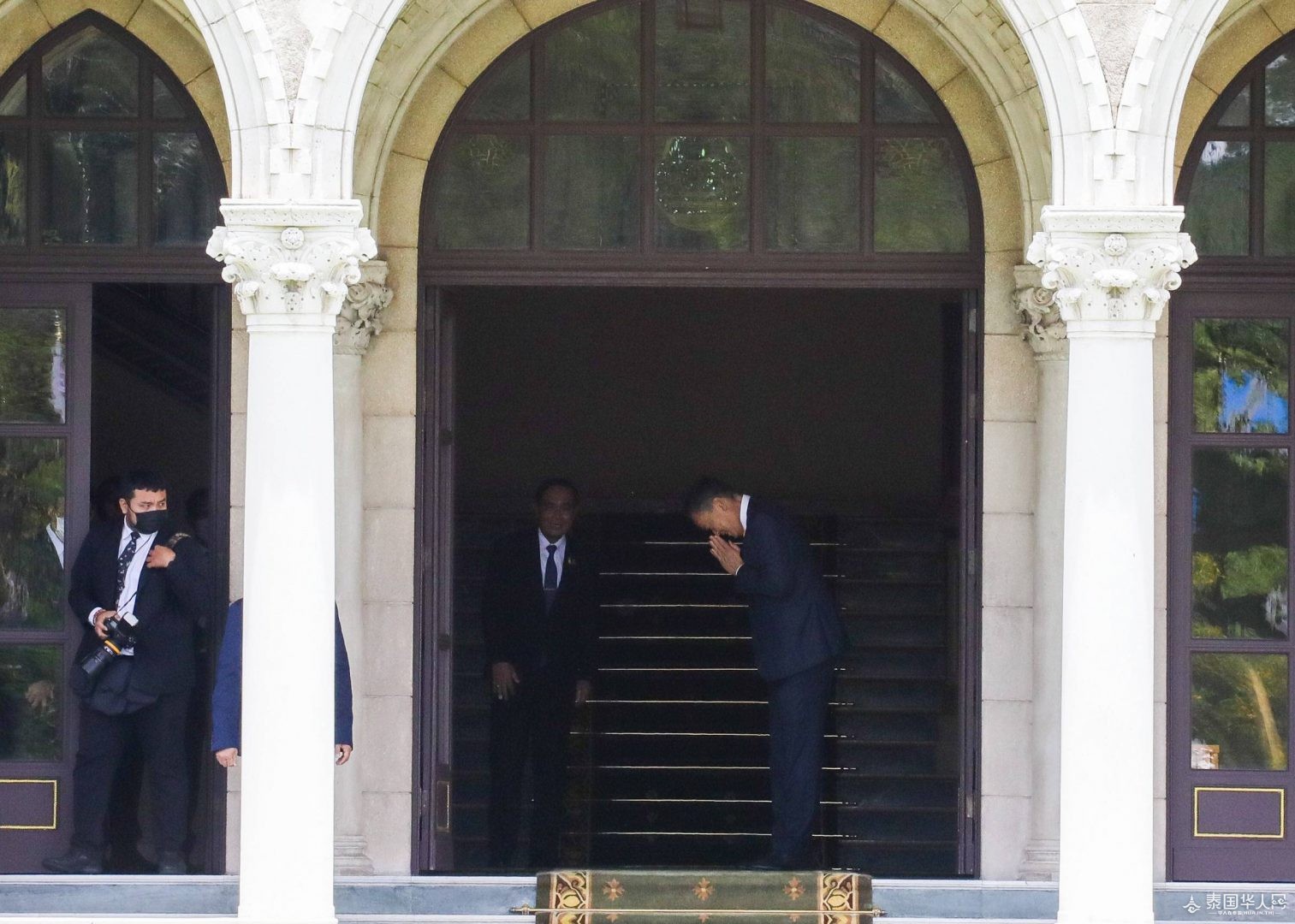 会谈持续了约45分钟,于11时45分结束。随后,巴育上将陪同赛塔参观了政府大楼的二楼区域,并参观了一些照片展示。在参观过程中,两位领导人面带微笑。会见结束后,于11时55分,巴育上将亲自护送赛塔前往政府大楼的前门,赛塔回礼并表示感谢,以示尊敬。