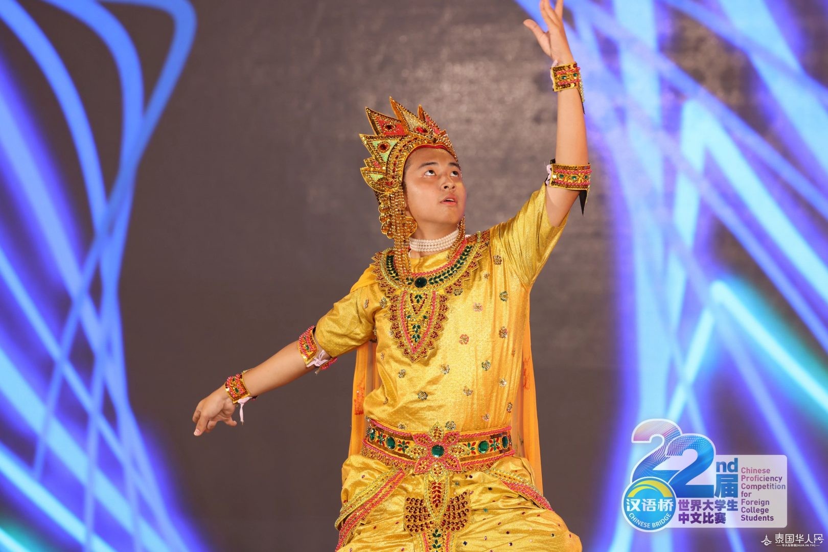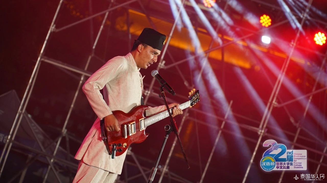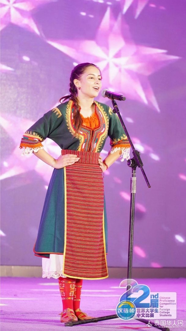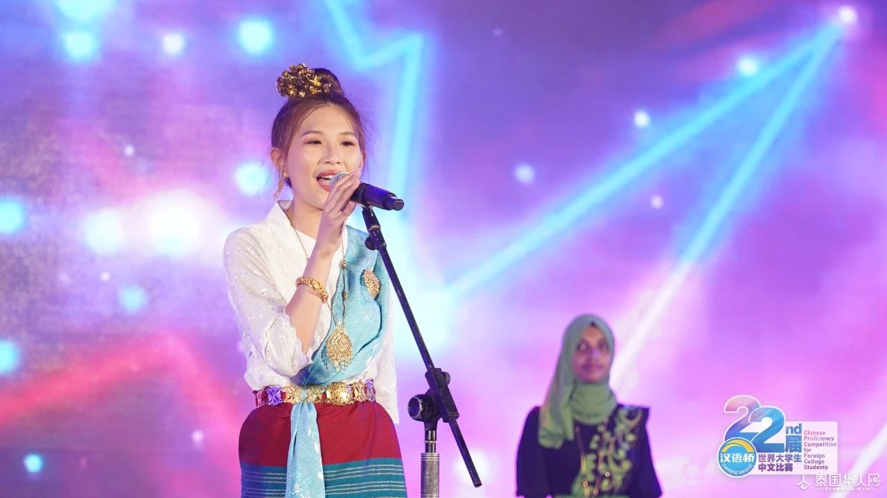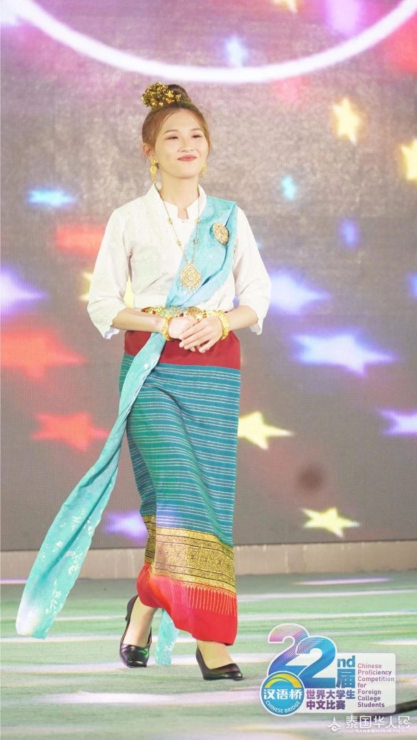 △缅甸选手黄立璇表演蒲甘民族舞。 恰逢七夕佳节 主办方还为选手们准备了玫瑰花 青春年华 笑靥如花