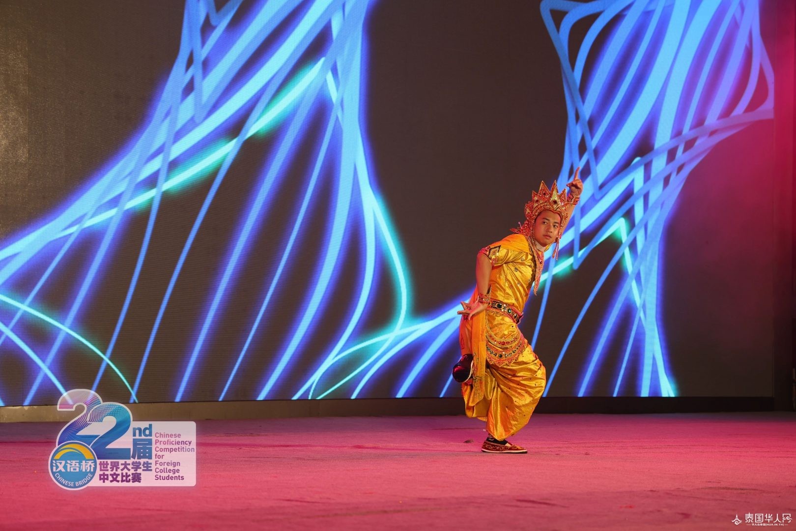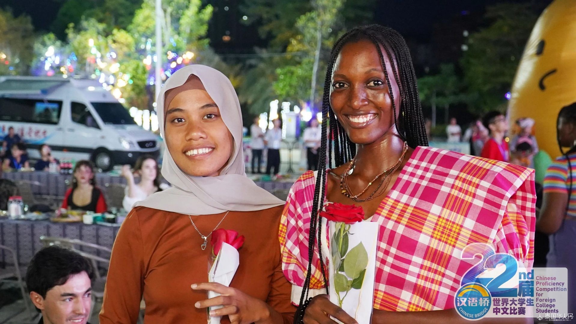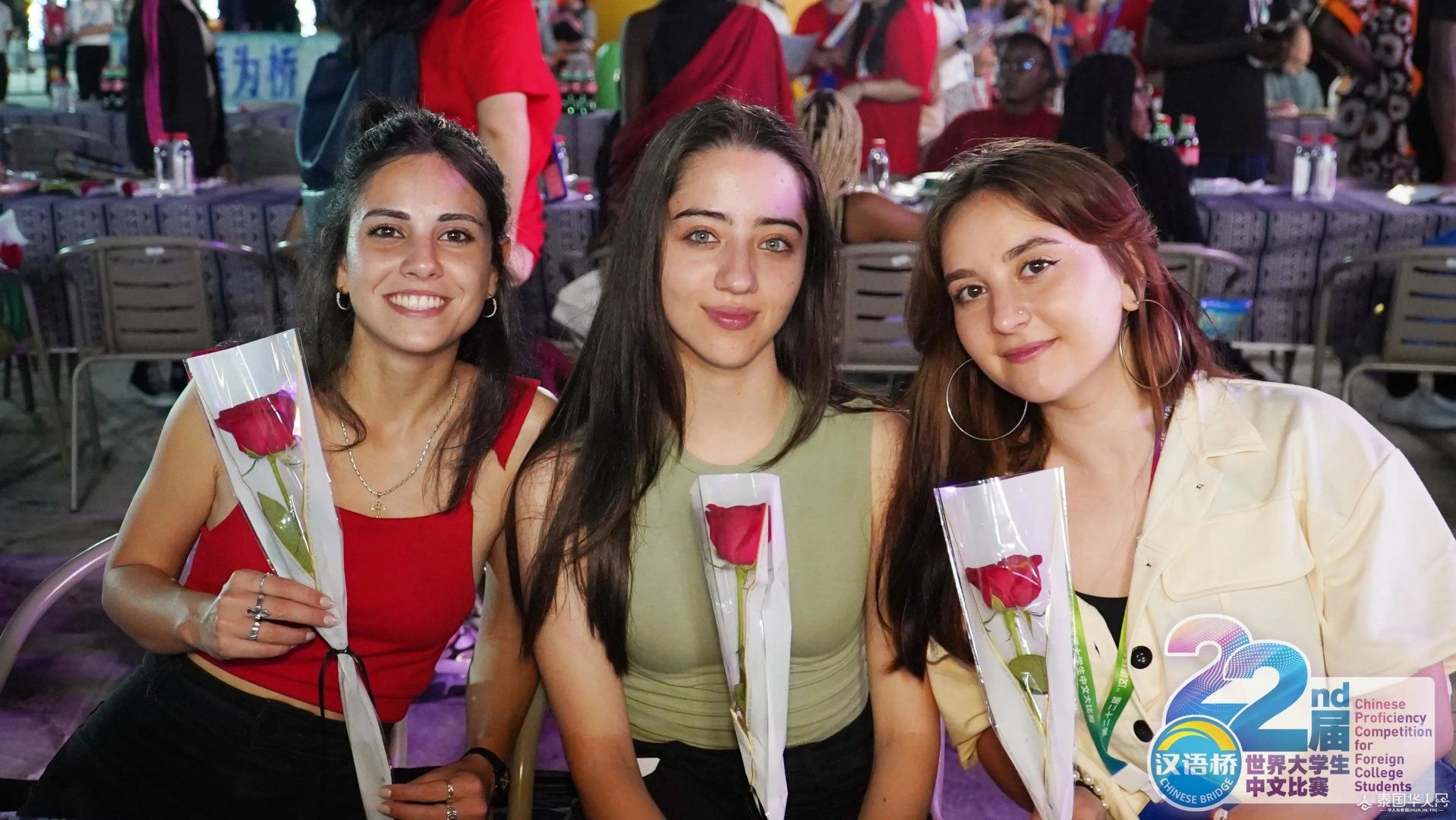 △缅甸选手黄立璇表演蒲甘民族舞。 恰逢七夕佳节 主办方还为选手们准备了玫瑰花 青春年华 笑靥如花