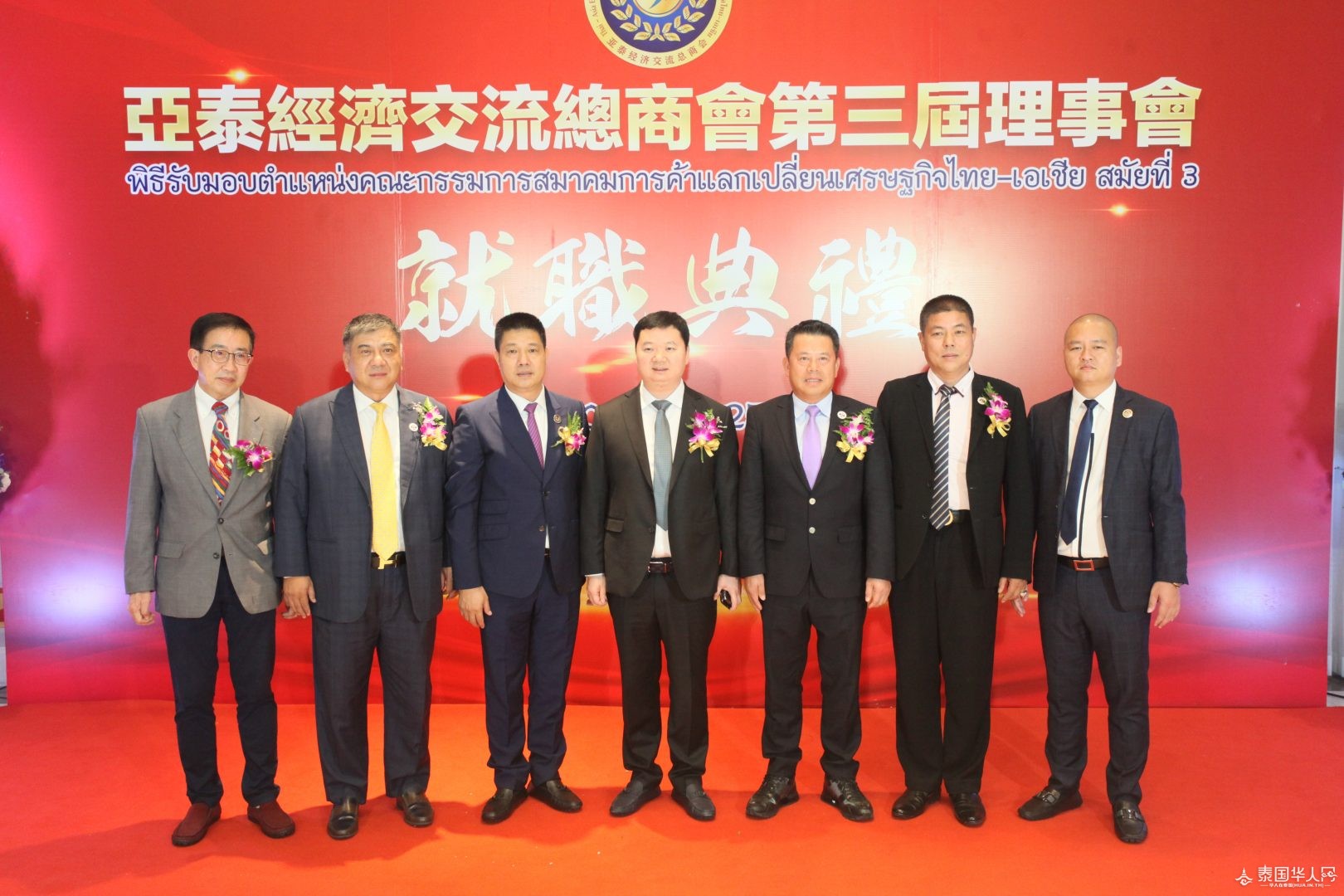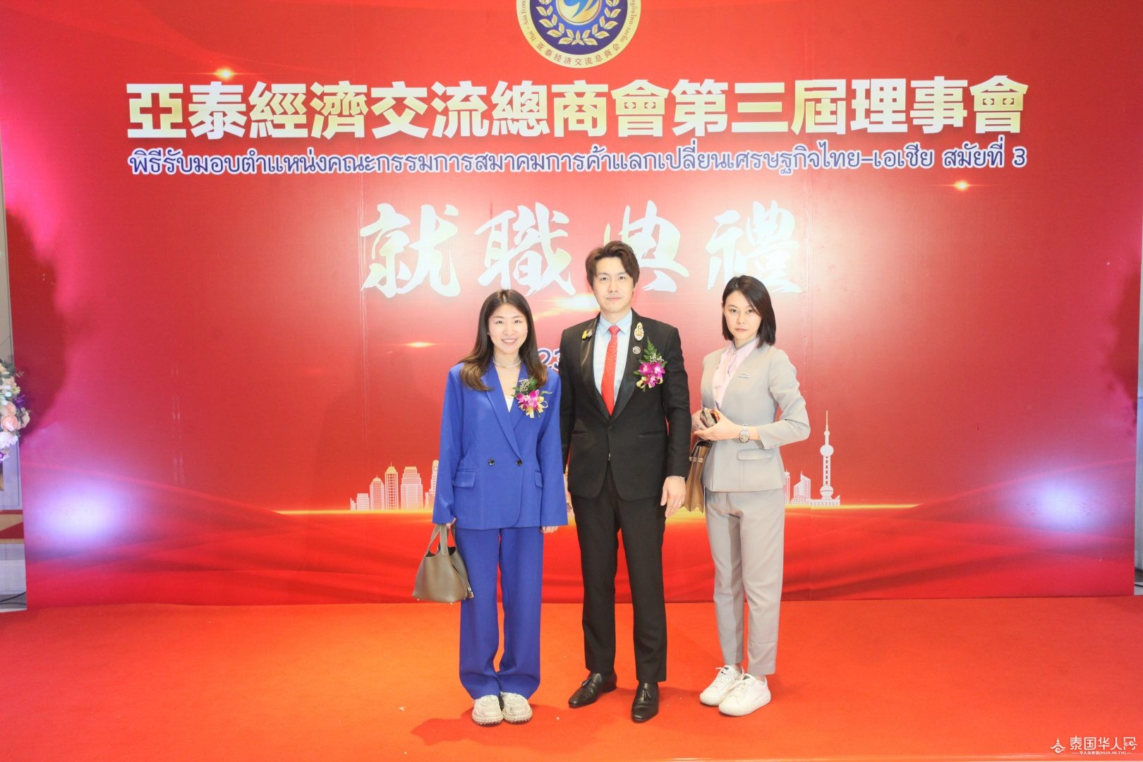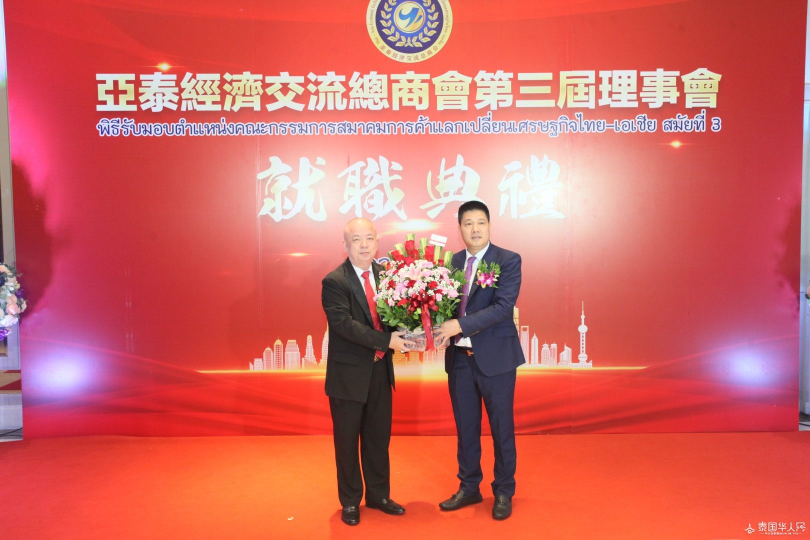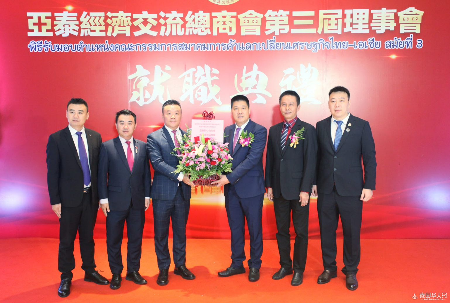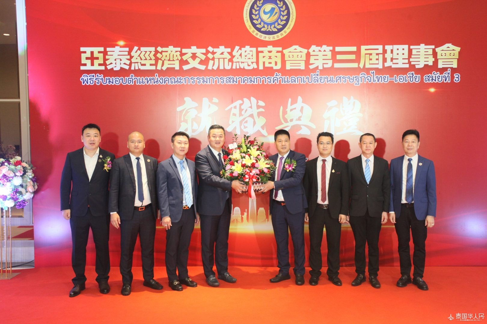 泰国华人网讯 亚泰经济交流总商会第三届理事会就职典礼于2023年8月25日(星期五)晚六时在泰国中华总商会光华堂隆重举行,泰国农业与合作社部长查霖猜·诗喜翁阁下(李金朵)担任大会主席主持仪式,中国驻泰大使馆经济商务处张潇潇参赞、梅州市委常委、梅州市海外联谊会会长崔毅、梅州市侨联主席汤志平、泰国国防部次长参谋主任塔纳帕上将、泰国警察总署长助理功猜·概恳警中将、曼谷第九区警察局长蓬阿喃警少将、泰国中华总商会代主席何克家、泰国潮州会馆代主席黄烈凯、泰国中国和平统一促进总会会长王志民博士以及泰华各侨团领导、各界嘉宾等逾200人出席致贺,场面热烈,气氛温馨!