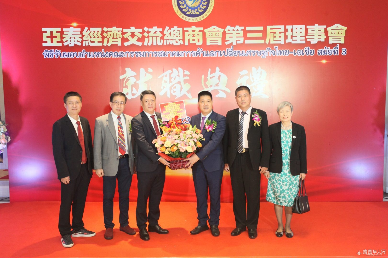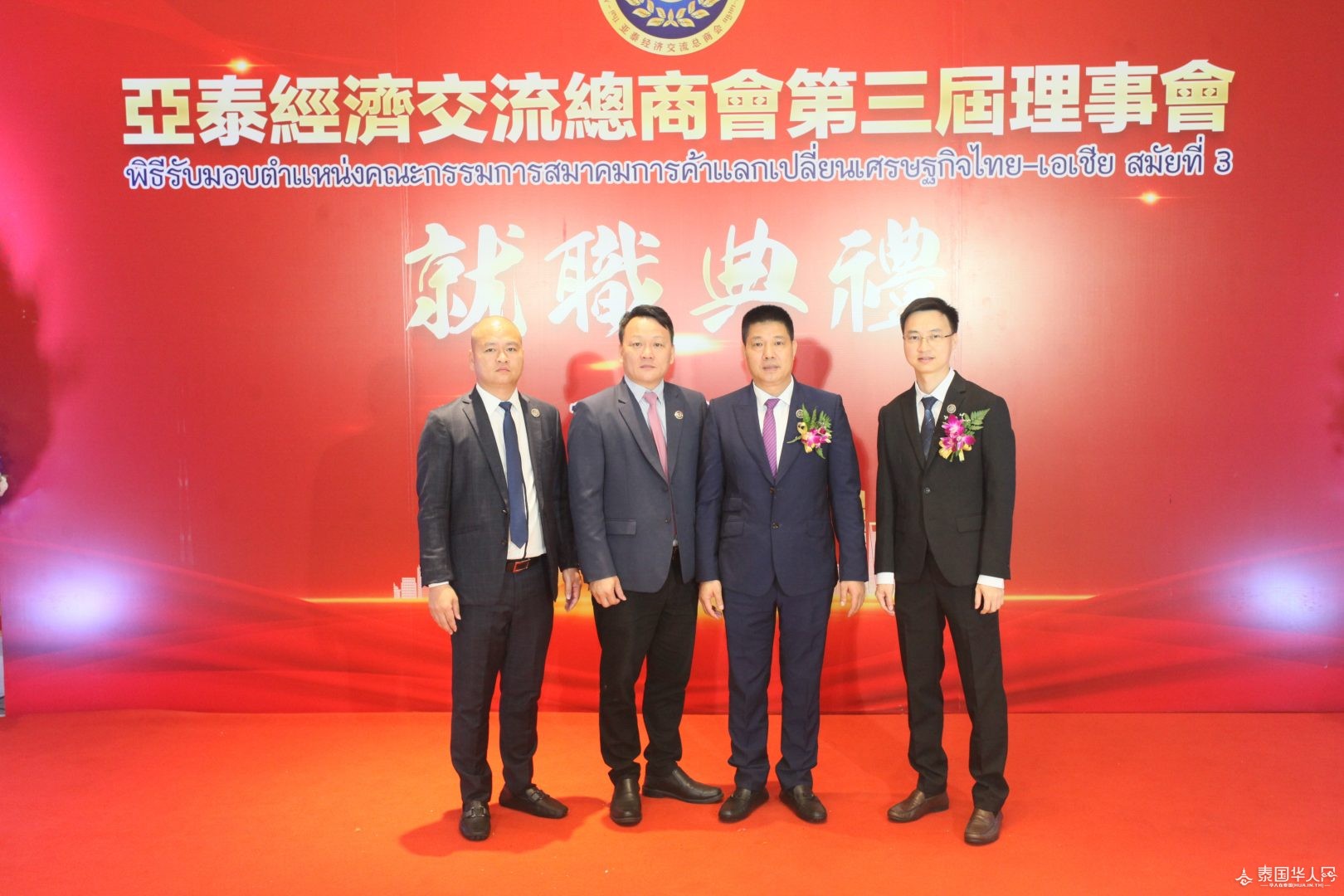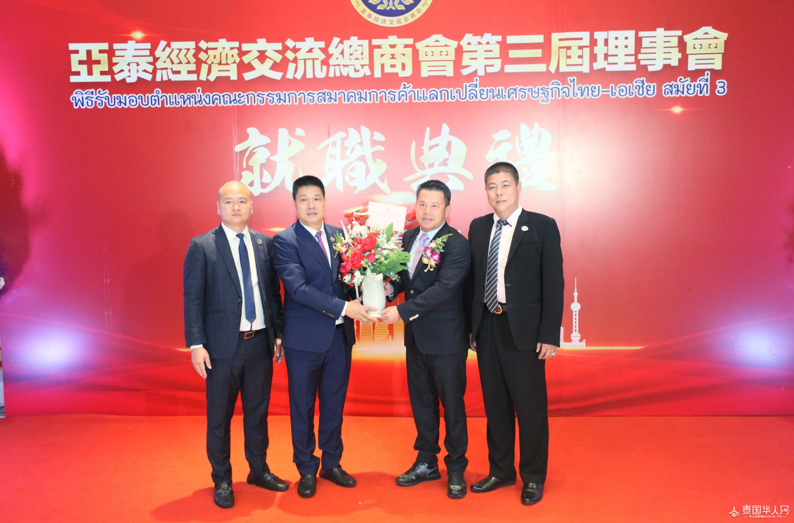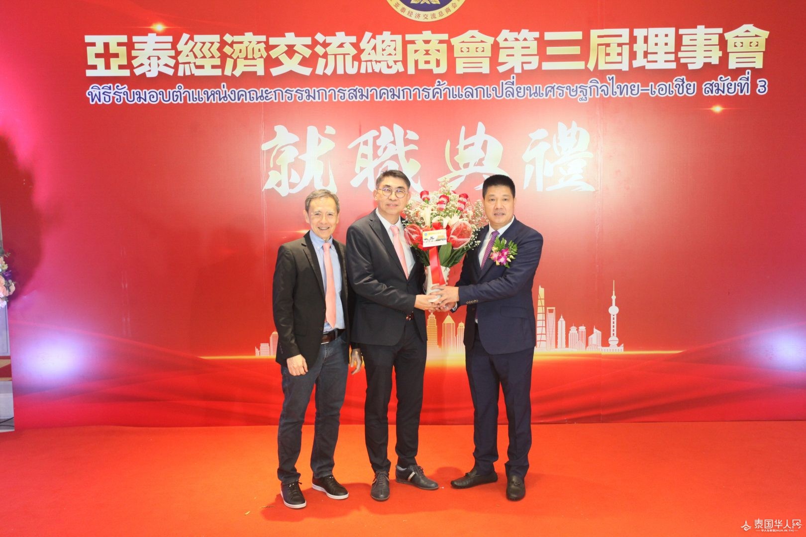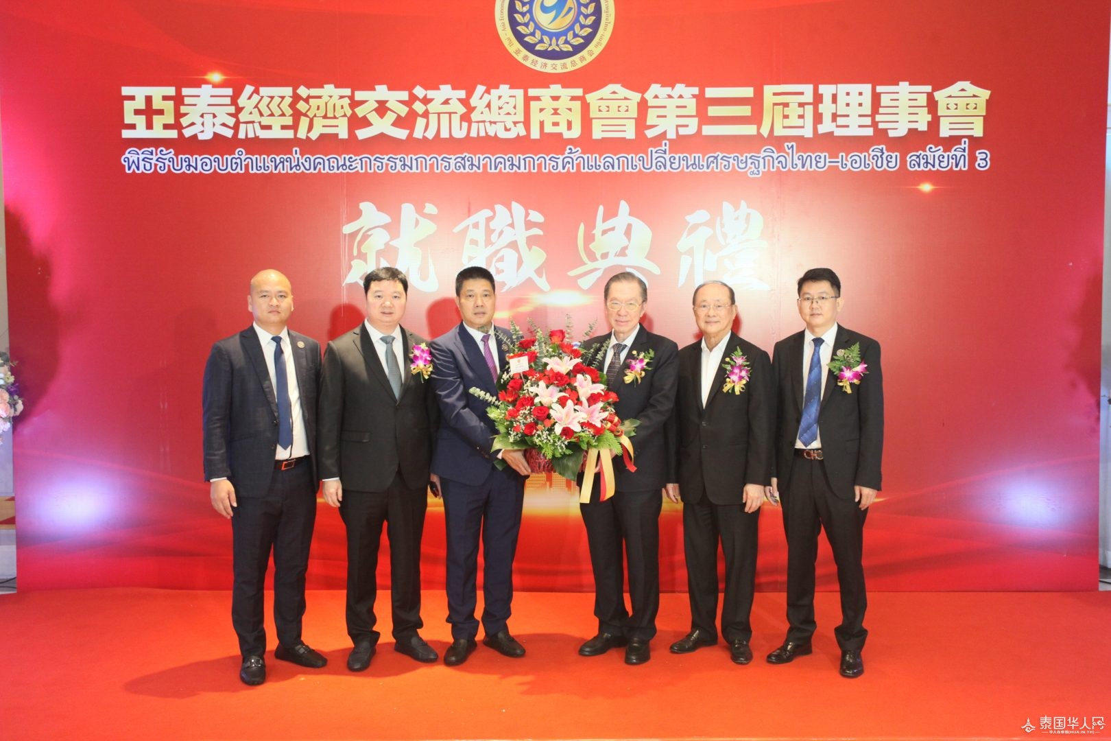 泰国华人网讯 亚泰经济交流总商会第三届理事会就职典礼于2023年8月25日(星期五)晚六时在泰国中华总商会光华堂隆重举行,泰国农业与合作社部长查霖猜·诗喜翁阁下(李金朵)担任大会主席主持仪式,中国驻泰大使馆经济商务处张潇潇参赞、梅州市委常委、梅州市海外联谊会会长崔毅、梅州市侨联主席汤志平、泰国国防部次长参谋主任塔纳帕上将、泰国警察总署长助理功猜·概恳警中将、曼谷第九区警察局长蓬阿喃警少将、泰国中华总商会代主席何克家、泰国潮州会馆代主席黄烈凯、泰国中国和平统一促进总会会长王志民博士以及泰华各侨团领导、各界嘉宾等逾200人出席致贺,场面热烈,气氛温馨!
