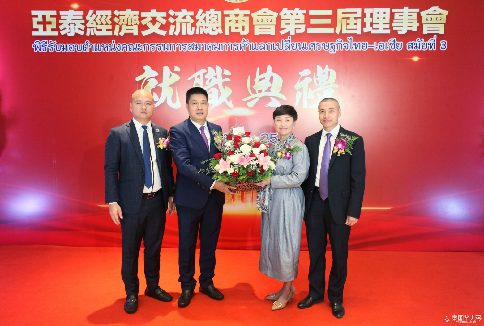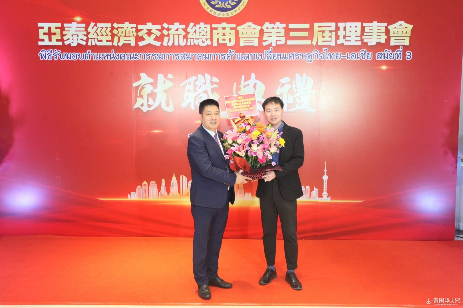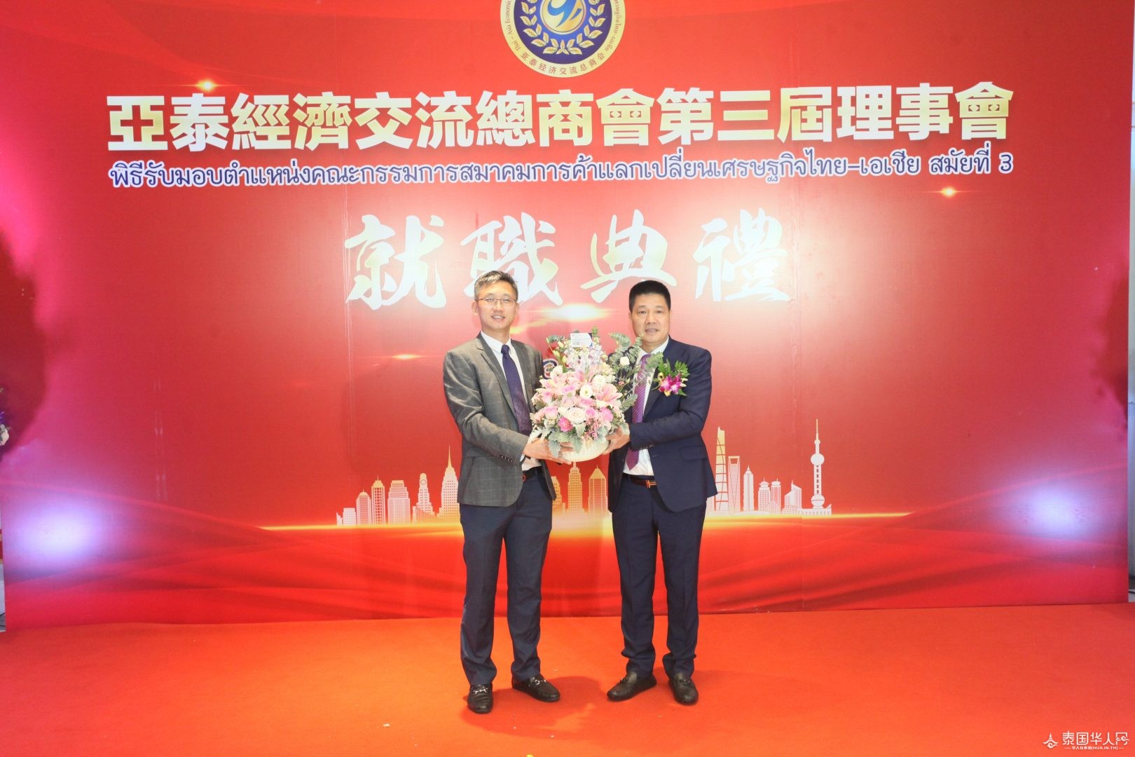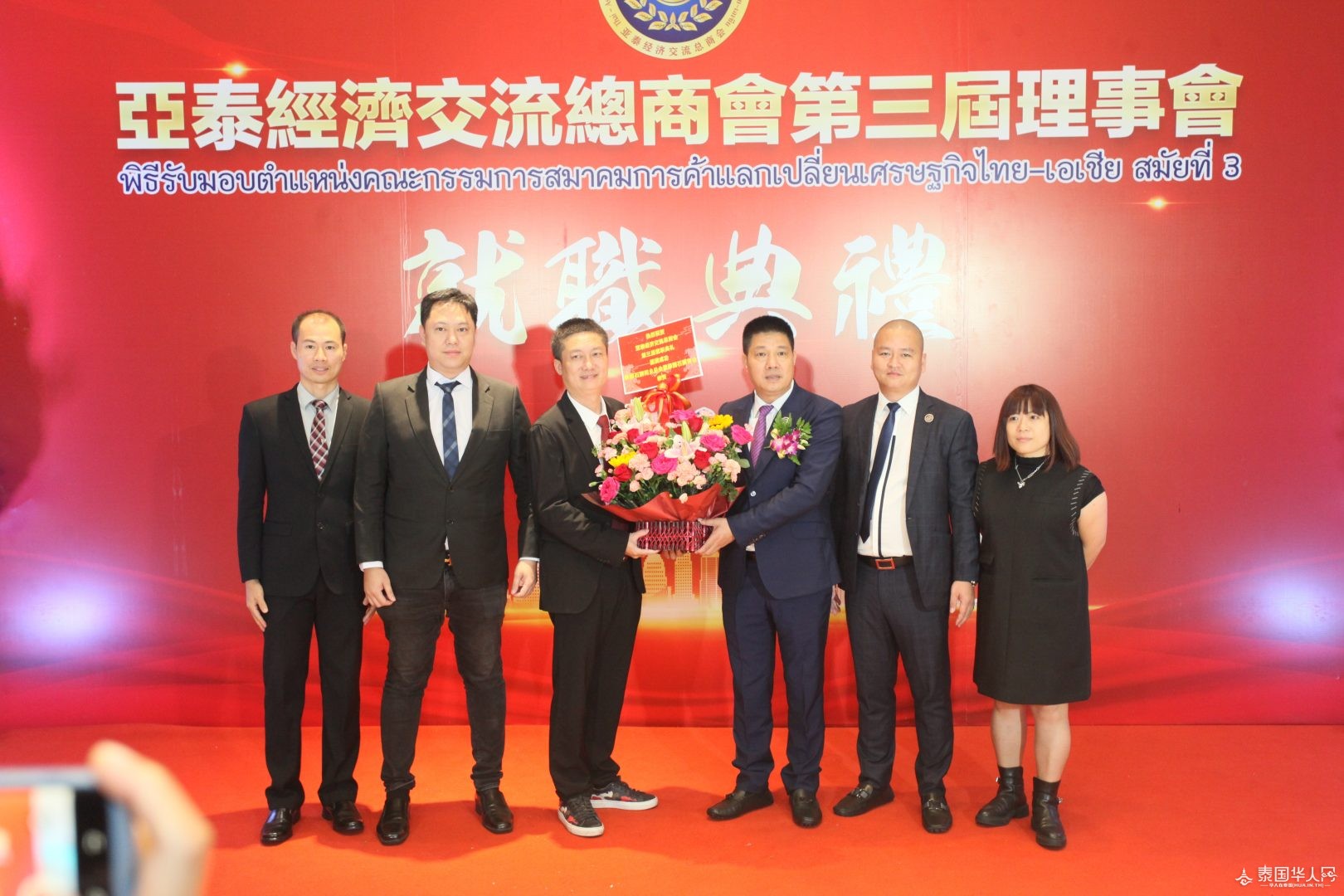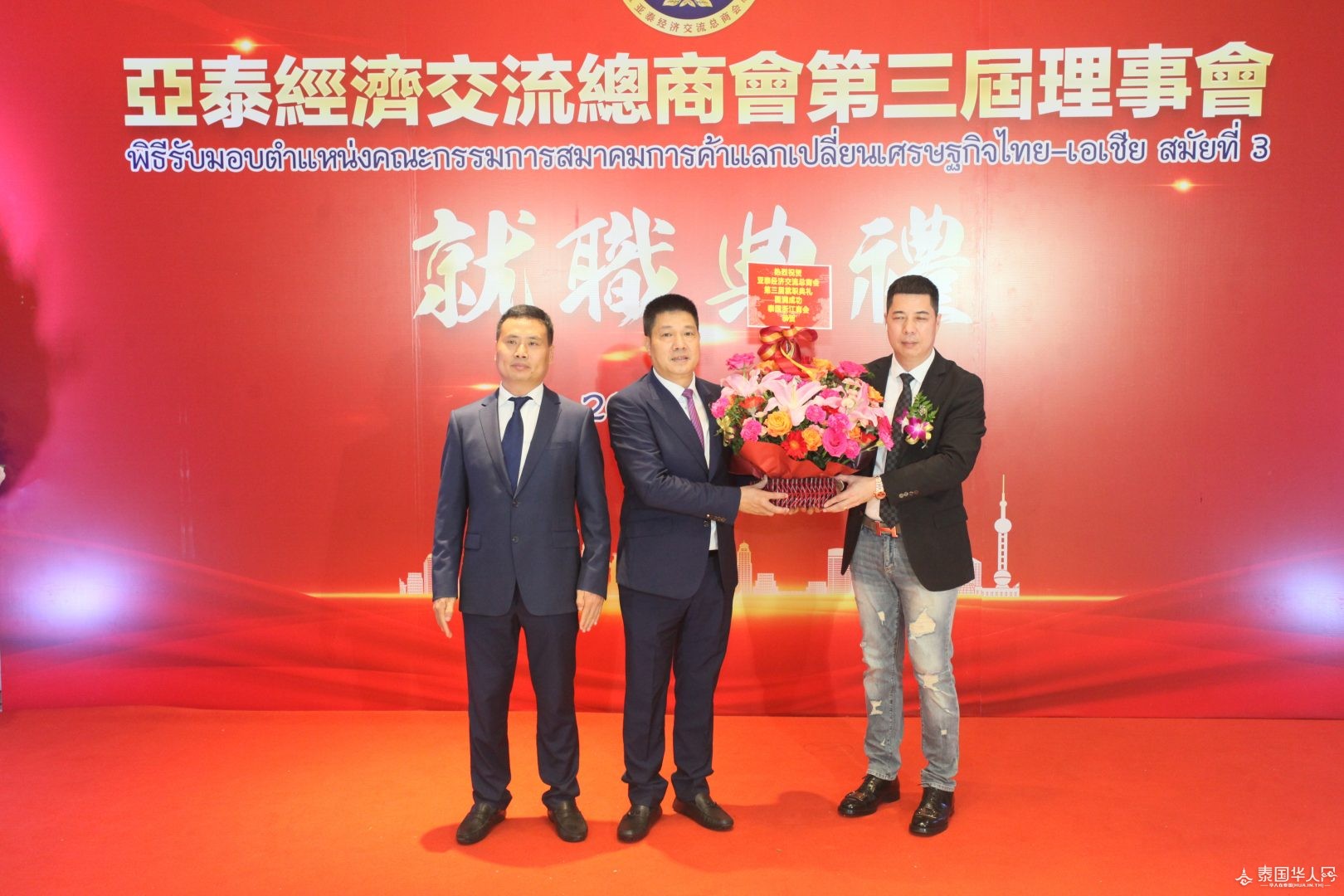 泰国华人网讯 亚泰经济交流总商会第三届理事会就职典礼于2023年8月25日(星期五)晚六时在泰国中华总商会光华堂隆重举行,泰国农业与合作社部长查霖猜·诗喜翁阁下(李金朵)担任大会主席主持仪式,中国驻泰大使馆经济商务处张潇潇参赞、梅州市委常委、梅州市海外联谊会会长崔毅、梅州市侨联主席汤志平、泰国国防部次长参谋主任塔纳帕上将、泰国警察总署长助理功猜·概恳警中将、曼谷第九区警察局长蓬阿喃警少将、泰国中华总商会代主席何克家、泰国潮州会馆代主席黄烈凯、泰国中国和平统一促进总会会长王志民博士以及泰华各侨团领导、各界嘉宾等逾200人出席致贺,场面热烈,气氛温馨!
