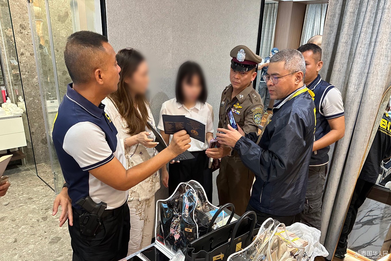 泰国华人网讯 8月30日,泰国中央调查局与相关部门的270多名工作人员对曼谷、北榄府、春武里府和乌隆他尼府的30个目标地点进行搜查,剿灭名为“Hybrid Scam”的跨国犯罪组织、网络诈骗团伙,逮捕了上至该团伙的领头,下至持有非法账户、购买非法账户、管理洗钱设备的嫌疑人。同时,查收其非法所得,包括17栋豪宅、12辆豪车、600万泰铢现金和10条金项链,手表、名牌包、电脑、笔记本、手机、银行存折等,总价值超过10亿泰铢。被逮捕的9名犯罪嫌疑人(2名中国人和7名泰国人)信息分别如下: