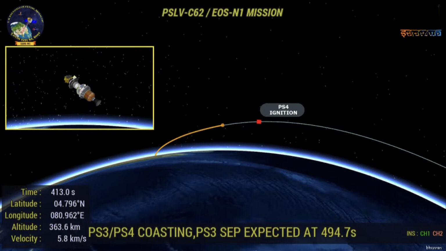 据GISTDA介绍,THEOS-2A卫星于1月12日11时48分搭载印度ISRO的PSLV-C62火箭发射,但在第三阶段后期火箭姿态控制出现异常,导致飞行轨迹偏离预定轨道。最终,THEOS-2A及另外15颗卫星未能进入预定轨道。