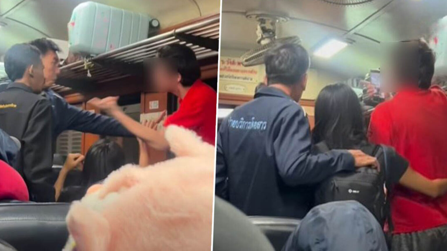 泰国华人网讯 2026年1月13日凌晨,一名醉酒外籍男子在泰国一列火车上滋事辱骂乘客,被铁路工作人员和乘客强制带离列车。多名目击者表示,该男子在车厢内大声喧哗,贬低泰国和泰国人,并不断称赞柬埔寨,引发乘客强烈不满。 据社交媒体用户阿米娜·托克尤索上传的视频显示,该男子与其泰国籍妻子一同登车后发生争吵,随后情绪失控。视频中可见,该男子砸碎列车车窗,要求饮酒,并多次做出下流手势,还在车厢内持续辱骂其他乘客。