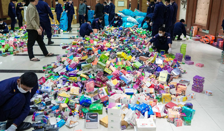 泰国华人网讯  柬埔寨警方近日在金边夜生活区查获一起大型非法电子烟销售案件,现场被称为“神秘屋”的销售点被查封,缴获超过30万件吸烟设备。