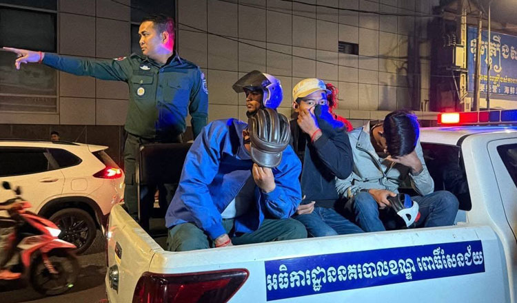 警方表示,行动于2026年1月21日晚9时在Por Sen Chey区Chom Chao 1 Sangkat Kok Chambok村的一条混凝土道路上进行。当局接到市民举报,有一群嫌疑人骑乘五辆摩托车,其中部分穿着带有国家警察标志的蓝色作战服,其余穿便衣并配有无线电设备,在公共道路上拦截并恐吓摩托车骑行者,企图勒索财物。
