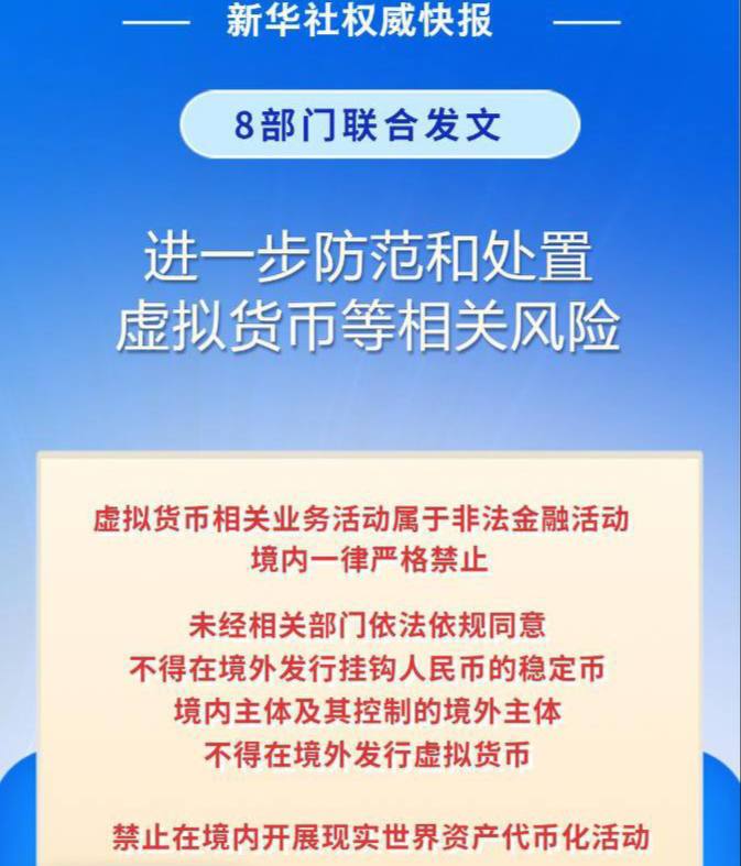 摘要: 泰国华人网讯 中国人民银行及八家监管机构今日联合发布通知,进一步防范和处置虚拟货币及相关风险。通知明确指出,虚拟货币相关业务活动属于非法金融活动,境内一律严格禁止。未经相关部门依法依规同意,境内外任何 ...