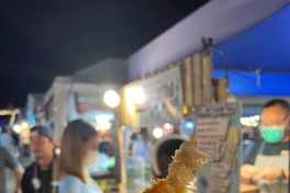 你们知道最近泰国夜市流行什么食物吗烤水母!吃起来像脆肠!一串20泰铢