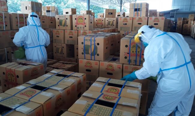 为了解决该问题,泰国政府通过中国检验认证集团(CCIC)的检验标准对榴莲进行检测,检测通过后贴上“无新冠病毒”认证标签,并对榴莲、榴莲集装箱以及包装盒进行消毒杀菌,若其中任何一个环节没有达标都无法出口。