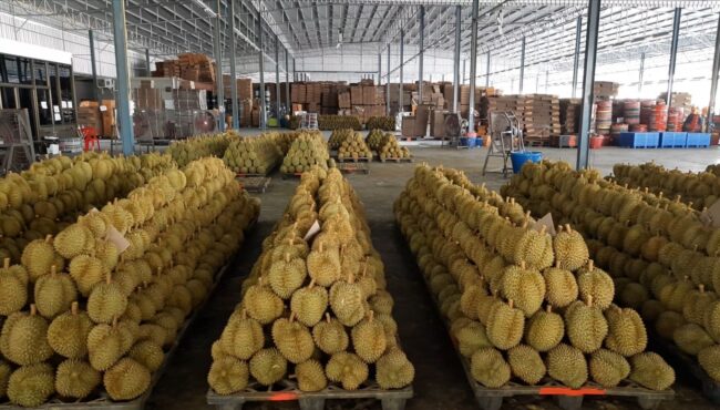 据泰媒报道,由于榴莲价格暴跌,加之又从榴莲中检测出新冠病毒后无法出口至中国,使得榴莲果农们十分焦虑担忧。泰国总理兼国防部长巴育上将知悉后,派农业部副部长玛楠雅立即前往尖竹汶府实地调查,解决果农和从事出口工作相关人员的困难。 随后,泰国农业部副部长玛楠雅、中国检验认证集团(CCIC)、泰国国家农产品和食品标准局、尖竹汶府第六区农业研究发展局的相关工作人员一同前往尖竹汶府调查。相关人员表示,今年榴莲产量高达14万吨,计划5月初大量出口到中国市场,但如今因为从榴莲中检测出新冠病毒从而导致无法出口榴莲,大部分榴莲被滞留在泰国,因此眼下需要紧急解决这些问题。