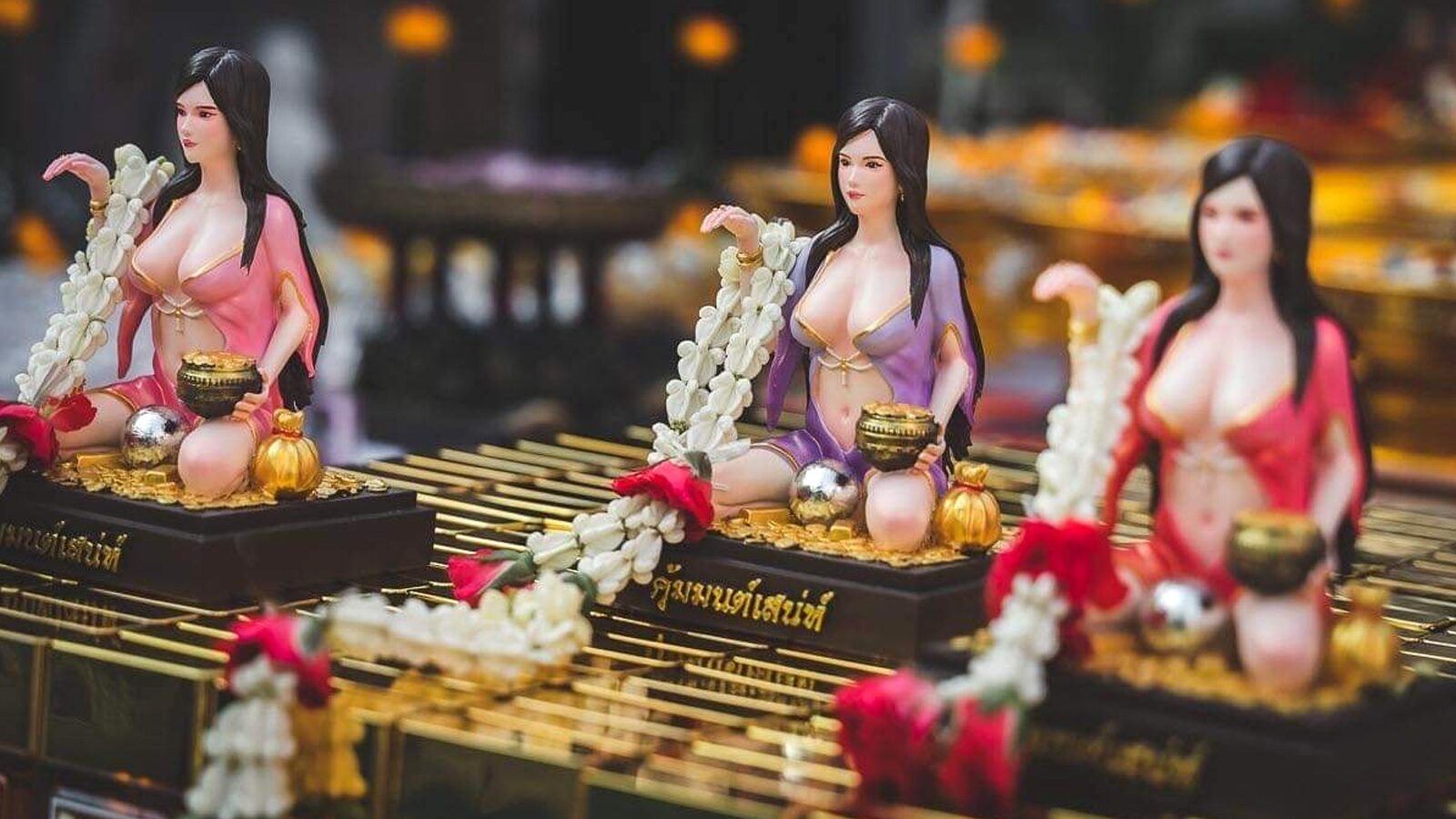 泰国华人网讯 近日,脸书主页“Khum Monsanaeha”发布了一组招财女神“南卦”手办帖子,帖子中,南卦的形象一改头戴金冠、身着泰装,右手呈招财猫手势大方端庄的形象,摇身一变性感女郎,穿戴着东京女郎的低胸装。 对此,该主页的博主兼“南卦”设计师表示,“南卦的形象被我们所熟知,一张“泰”脸、着泰装。现在,我想要把她设计得更加地流行时尚。手办由树脂制作而成,制作完成后在寺庙进行开光,除了手办之外,还有同款的项链周边”。 帖子发布后,网友们纷纷转发并发表看法,既有正面评价、也有不少负面评价。目前,发布该帖文的主页已经删除该帖子。 (编译:何萱蓉四点零翻译工作坊;审校:wan;来源:khaosod) 原文:Thailand Headlines |