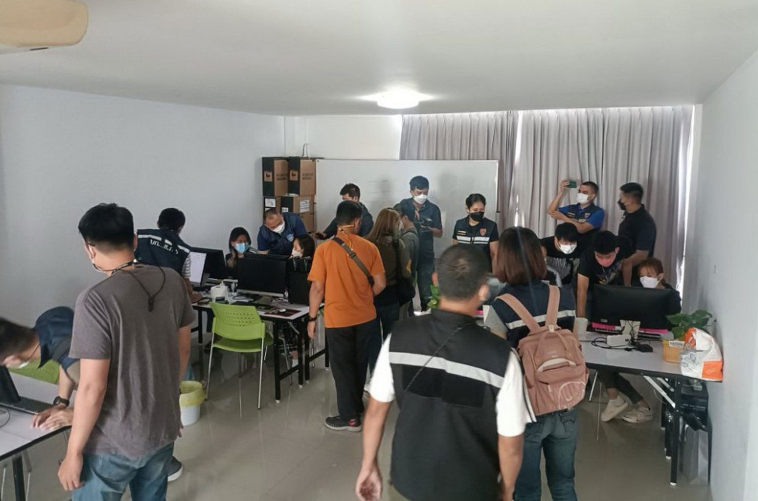 搜查行动共20名警察前往执行。省警察第五区副区长Pol Maj Gen Veerachon Boonthawee表示,他们发现两名中国男子和五名泰国妇女在二楼工作。在网络上发布给泰国人提供高薪工作的帖子。 应聘者在该大楼内的一所学校接受电话工作培训。然后,他们会被送到缅甸的呼叫中心,以泰国和中国人为诈骗目标,诈骗对方转账。